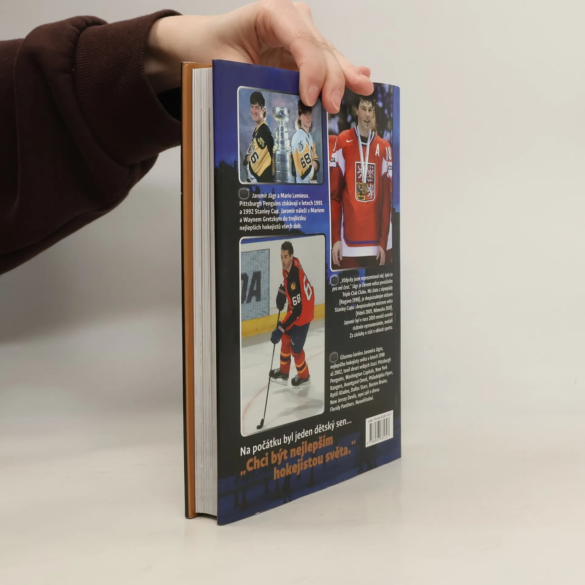 Jaromír Jágr, sportovní gigant s olympijským zlatem z Nagana 1998, dvěma tituly mistra světa a dvěma prsteny za Stanley Cup, je ikonou českého hokeje. Autor se vyhýbá tradičnímu portrétu a zaměřuje se na Jágrův vnitřní svět, jeho proměnu a kořeny výjimečnosti. Od dětství snil o tom, že se stane nejlepším hokejistou, a jeho úspěchy to potvrzují. Obyčejný chlapec z Kladna se stal hvězdou NHL, kde vedl tři týmy jako kapitán a získal si srdce fanoušků v Americe i Rusku. Autor se ptá na vliv jeho otce a matky na jeho úspěch, a jak se Jágr vyvinul jako člověk a sportovec. Odpovědi přinášejí osobnosti, které s ním pracovaly, jako jeho kouč Marian Jelínek, nebo hráči jako Martin Straka. Hovoří také legendy hokeje, včetně Lemieuxe a Gretzkyho, a čeští trenéři Hadamczik a Růžička, kteří Jágrův talent vždy obdivovali. Kniha, aktuálně vydaná před mistrovstvím světa v hokeji 2015, zachycuje Jágrův status jako jednoho z nejlepších hokejistů planety i ve svých třiačtyřiceti letech.