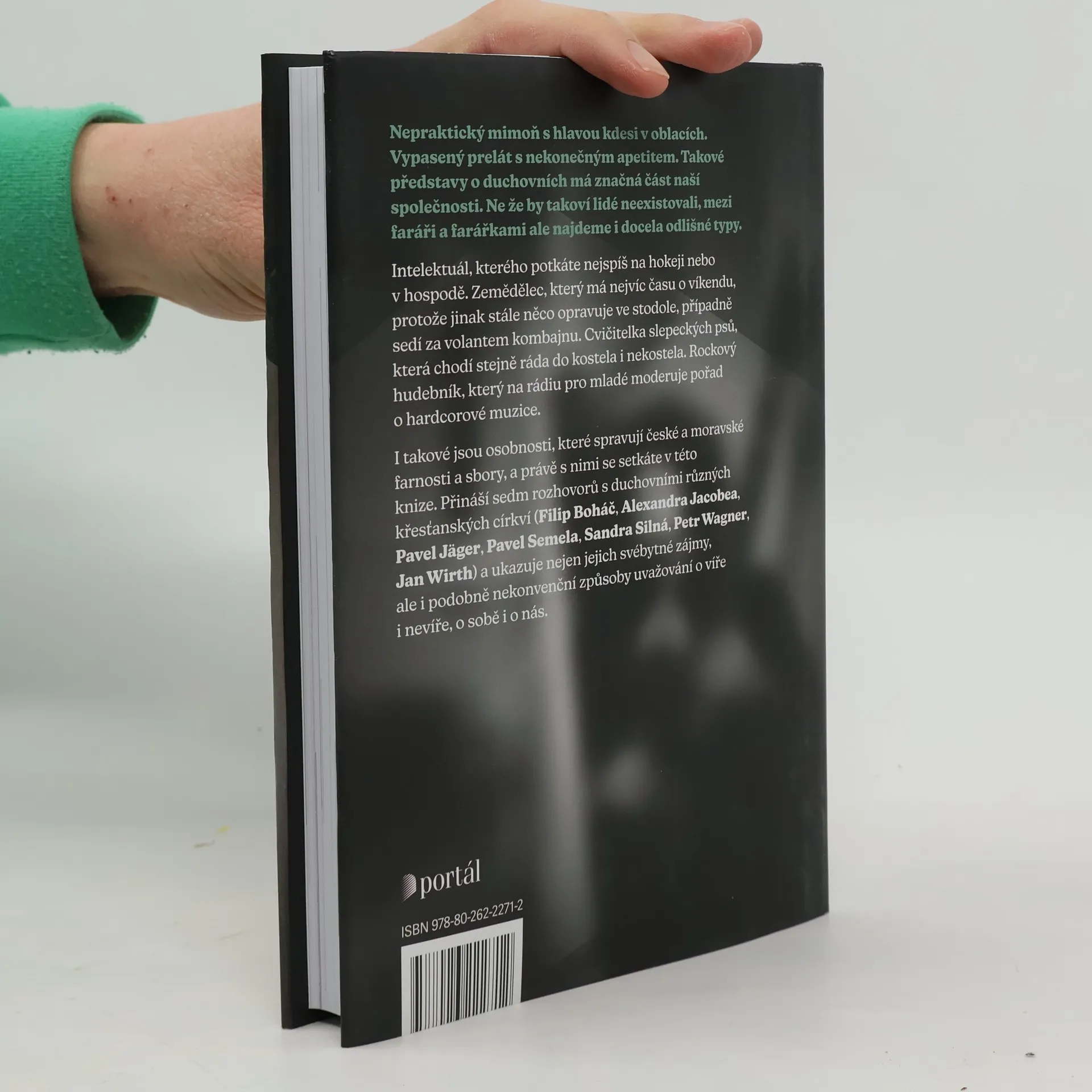Nepraktický mimoň s hlavou kdesi v oblacích. Vypasený prelát s nekonečným apetitem. Takové představy o duchovních má značná část naší společnosti. Ne, že by takoví lidé neexistovali, mezi faráři a farářkami ale najdeme i docela odlišné typy. Intelektuál, kterého potkáte nejspíš nahokeji nebo v hospodě. Zemědělec, který má nejvíc času o víkendu, protože jinak stále něco opravuje ve stodole, případně sedí za volantem kombajnu. Cvičitelka slepeckých psů, která chodí stejně ráda do kostela i nekostela. Rockový hudebník, který na rádiu pro mladé moderuje pořad o hardcorové muzice. I takové jsou osobnosti, které spravují české a moravské farnosti a sbory. Právě s takovými se setkáte v této knize. Kniha Ten farář je nějakej divnej přináší sedm rozhovorů s duchovními různých křesťanských církví (Filip Boháč, Alexandra Jacobea, Pavel Jäger, Pavel Semela, Sandra Silná, Petr Wagner, Jan Wirth). Ukazuje nejen jejich svébytné zájmy, ale i podobně nekonvenční způsob uvažování o víře i nevíře, o sobě i o nás. Dost možná je právě tohle ten způsob, jak přiblížit křesťanství lidem, pro které je návštěva kostela něčím zcela nereálným. Předpokládají totiž, že tam narazí na středověk. Ve skutečnosti tam nekonvenční vlasatý týpek s elektrickou kytarou v ruce rozvíjí nápady ohledně založení hobitího kláštera.