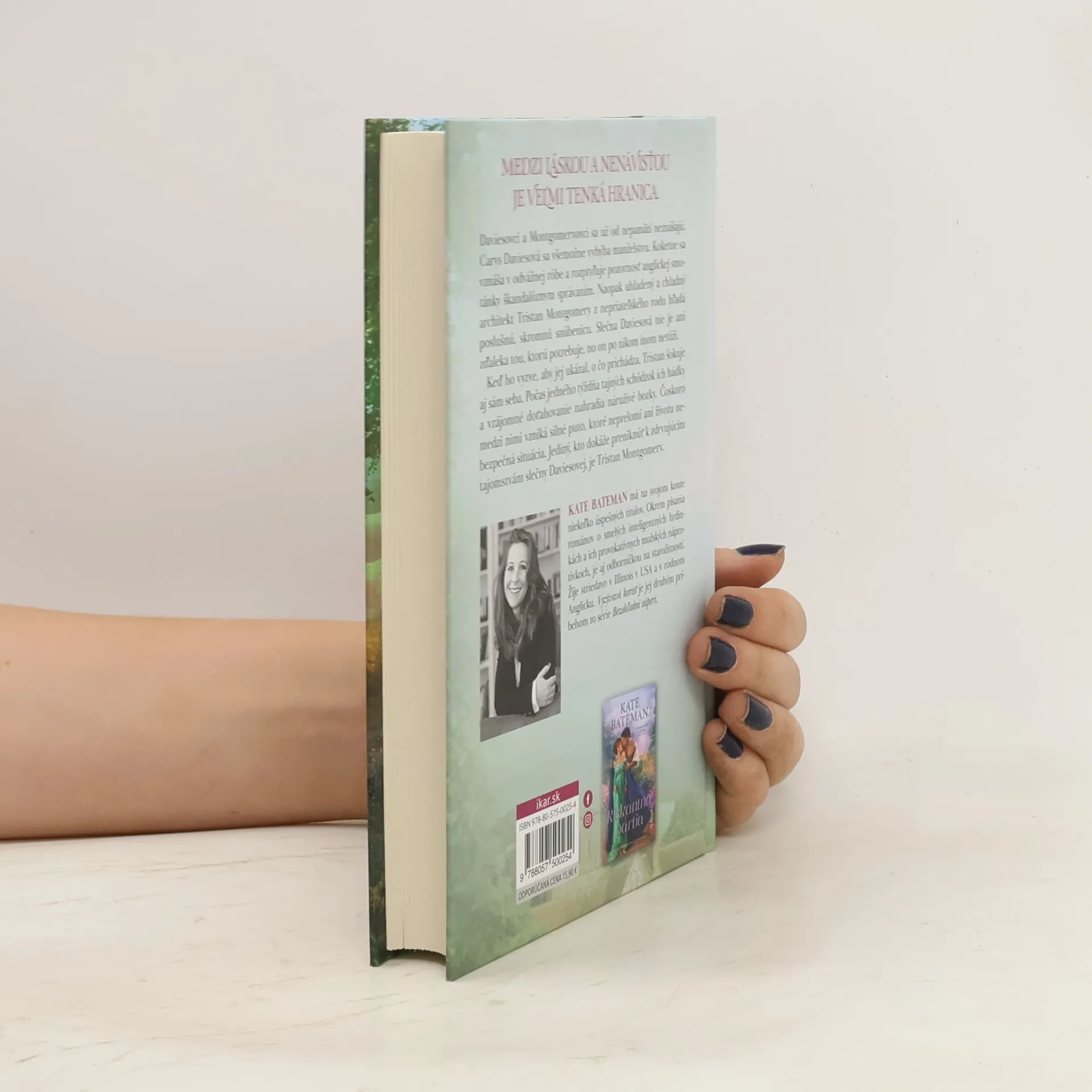 Objavovali vášeň a prekvapila ich láska Medzi láskou a nenávisťou je veľmi tenká hranica. Daviesovci a Montgomeryovci sa už od nepamäti neznášajú. Carys Daviesová sa všemožne vyhýba manželstvu. Koketne sa vznáša v odvážnej róbe a rozptyľuje pozornosť anglickej smotánky škandalóznym správaním. Naopak uhladený a chladný architekt Tristan Montgomery z nepriateľského rodu hľadá poslušnú, skromnú snúbenicu. Slečna Daviesová nie je ani z ďaleka tou, ktorú potrebuje, no on po nikom inom netúži. Keď ho vyzve, aby jej ukázal, o čo prichádza mimo zväzku, Tristan šokuje aj sám seba. Počas jedného týždňa tajných schôdzok ich hádky a vzájomné doťahovania nahradia náruživé bozky. Čoskoro medzi nimi vzniká silné puto, ktoré neprelomí ani životu nebezpečná situácia. Jediný, kto dokáže preniknúť k zdrvujúcim tajomstvám slečny Daviesovej, je Tristan Montgomery.