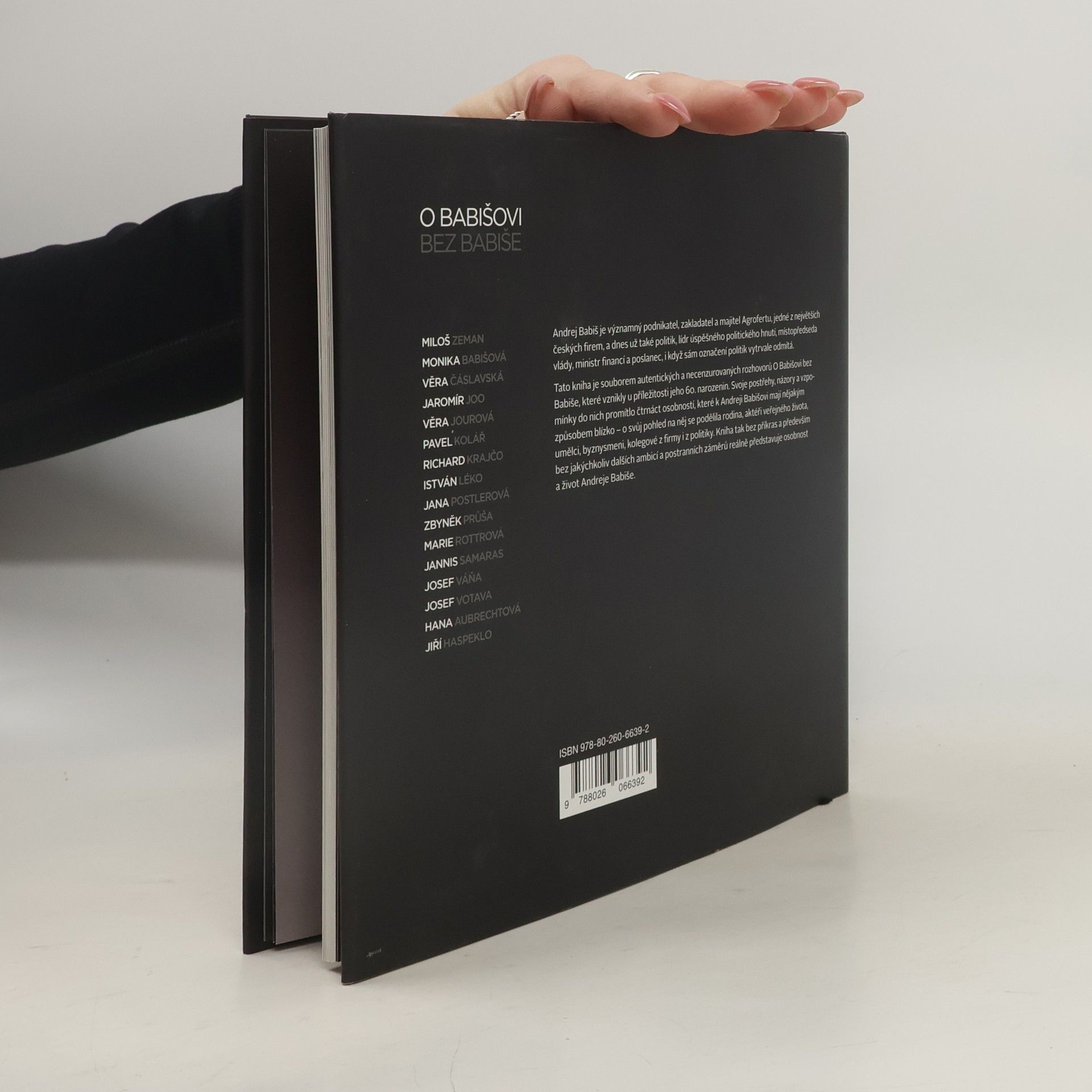 Andrej Babiš je významný podnikatel, zakladatel a majitel Agrofertu, jedné z největších českých firem, a dnes už také politik, lídr úspěšného politického hnutí, mistopředseda vlády, ministr financí a poslanec, i když sám označení politik vytrvale odmítá. Tato kniha je souborem autentických a necenzurovaných rozhovorů o Babišovi bez Babiše, které vznikly u příležitosti jeho 60. narozenin. Svoje postřehy, názory a vzpomínky do nich promítlo čtrnáct osobností, které k Andreji Babišovi mají nějakým způsobem blízko - o svůj pohled na něj se podělila rodina, aktéři veřejného života, umělci, byznysmeni, kolegové z firmy i z politiky. Kniha tak bez příkras a především bez jakýchkoliv dalších ambicí a postranních záměrů reálně představuje osobnost a život Andreje Babiše.