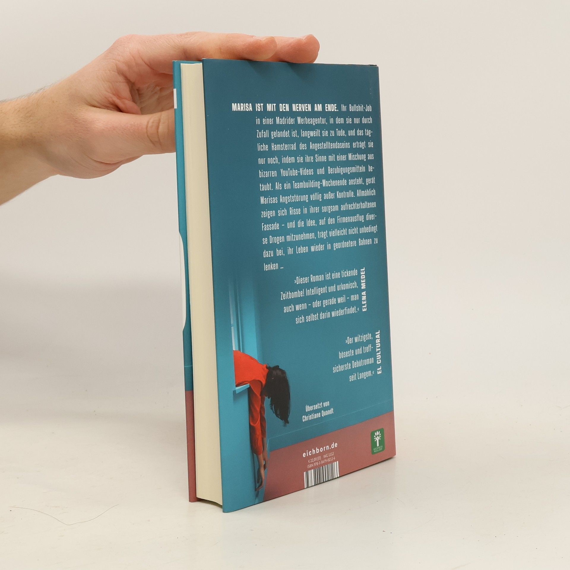 Marisa ist mit den Nerven am Ende. Ihr Bullshit-Job in einer Madrider Werbeagentur, in dem sie nur durch Zufall gelandet ist, langweilt sie zu Tode, und das tägliche Hamsterrad des Angestelltendaseins erträgt sie nur noch, indem sie ihre Sinne mit einer Mischung aus bizarren YouTube- Videos und Beruhigungsmitteln betäubt. Als ein Teambuilding-Wochenende ansteht, gerät Marisas Angststörung völlig außer Kontrolle. Allmählich zeigen sich Risse in ihrer sorgsam aufrechterhaltenen Fassade - und die Idee, auf den Firmenausflug diverse Drogen mitzunehmen, trägt vielleicht nicht unbedingt dazu bei, ihr Leben wieder in geordnetere Bahnen zu lenken ...