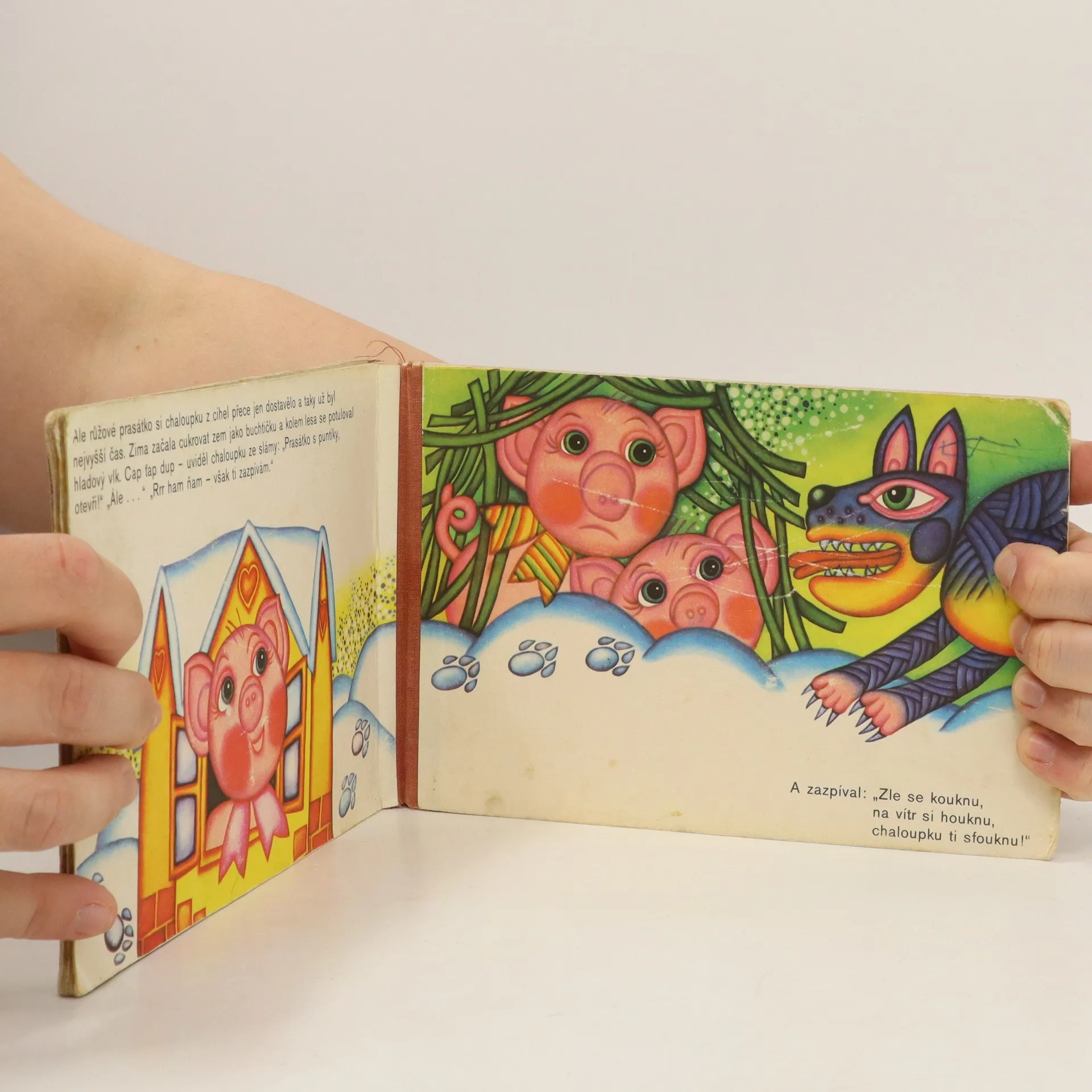 O třech prasátkách. Jak nejchytřejší a nejpracovitější prasátko si postavilo zděný domeček a zachránilo další dvě prasátka před vlkem.