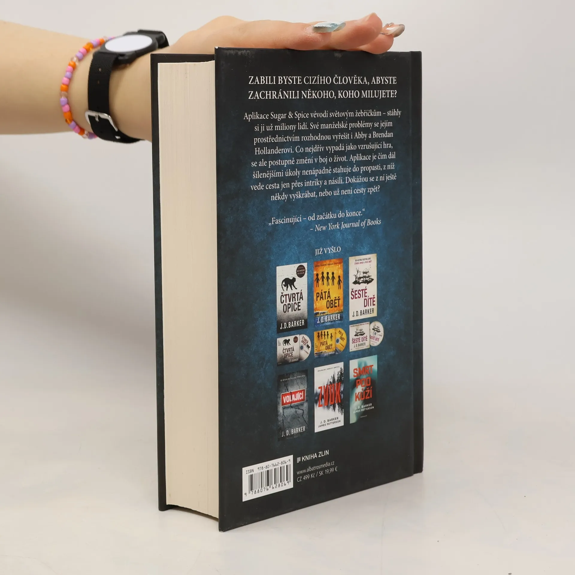 Zabili byste cizího člověka, abyste zachránili někoho, koho milujete? Aplikace Sugar & Spice vévodí světovým žebříčkům – stáhly si ji už miliony lidí. Své manželské problémy se jejím prostřednictvím rozhodnou vyřešit i Abby a Brendan Hollanderovi. Co nejdřív vypadá jako vzrušující hra, se ale postupně změní v boj o život. Aplikace je čím dál šílenějšími úkoly nenápadně stahuje do propasti, z níž vede cesta jen přes intriky a násilí. Dokážou se z ní ještě někdy vyškrábat, nebo už není cesty zpět? Mistr napětí J. D. Barker, autor bestsellerové série s detektivem Samem Porterem, přichází s dalším vzrušujícím temným thrillerem.