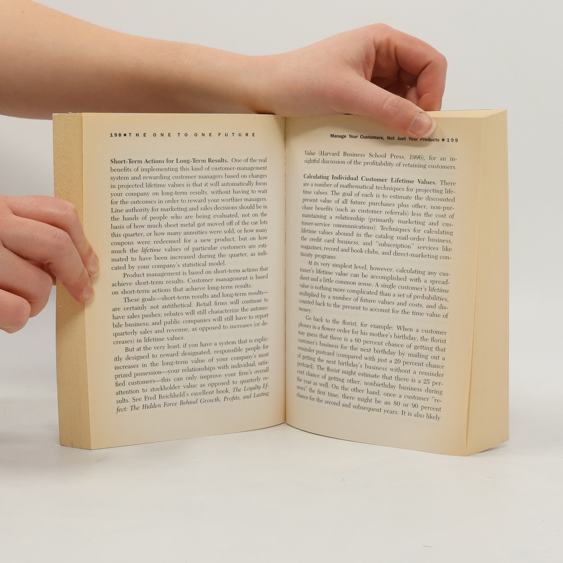Back from the future -- Share of customer, not share of market -- Collaborate with your customers -- Differentiate customers, not just products -- Economies of scope, not economies of scale -- Manage your customers, not just your products -- Engage your customers in dialogue -- Take products to customers, not customers to products -- Make money protecting privacy, not threatening it -- Society at light speed