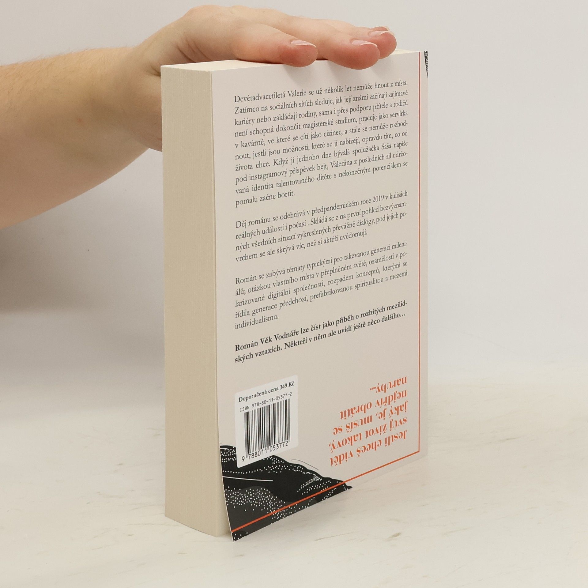 Jestli chceš vidět svůj život takový, jaký je, musíš se nejdřív obrátit naruby… Devětadvacetiletá Valerie se už několik let nemůže hnout z místa. Zatímco na sociálních sítích sleduje, jak její známí začínají zajímavé kariéry nebo zakládají rodiny, sama i přes podporu přítele a rodičů není schopná dokončit magisterské studium, pracuje jako servírka v kavárně, ve které se cítí jako cizinec, a stále se nemůže rozhodnout, jestli jsou možnosti, které se jí nabízejí opravdu tím, co od života chce. Když jí jednoho dne bývalá spolužačka Saša napíše pod její instagramový příspěvek hejt, Valeriina z posledních sil udržovaná identita talentovaného dítěte s nekonečným potenciálem se pomalu začne bortit. Děj románu se odehrává v předpandemickém roce 2019 v kulisách reálných událostí i reálného počasí. Skládá se z často banálních a na první pohled bezvýznamných všedních situací, pod jejichž povrchem se ale skrývá víc, než si aktéři uvědomují. Román se zabývá tématy typickými pro takzvanou generaci millenials; otázkou vlastního místa v přeplněném světě, osamělostí v polarizované digitální společnosti, rozpadem konceptů, kterými se řídila generace předchozí, prefabrikovanou spiritualitou a mezemi individualismu. Román Věk Vodnáře lze číst jako příběh o rozbitých mezilidských vztazích, někteří v něm ale uvidí ještě něco dalšího…