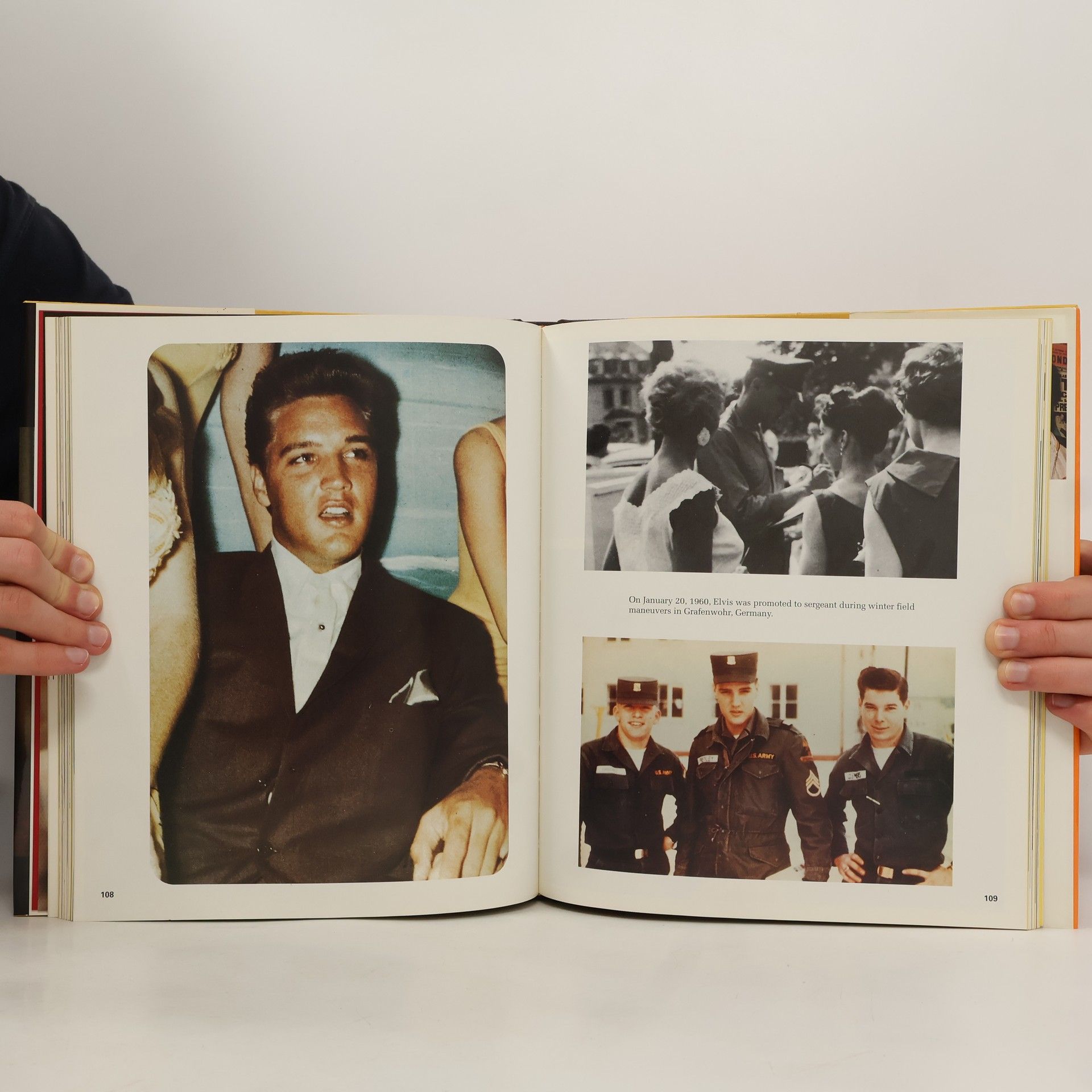 An album of never-before published photographs of Elvis Presley includes shots from the earliest days of his career, his sojourn in the army, his movie career, and his comeback and decline