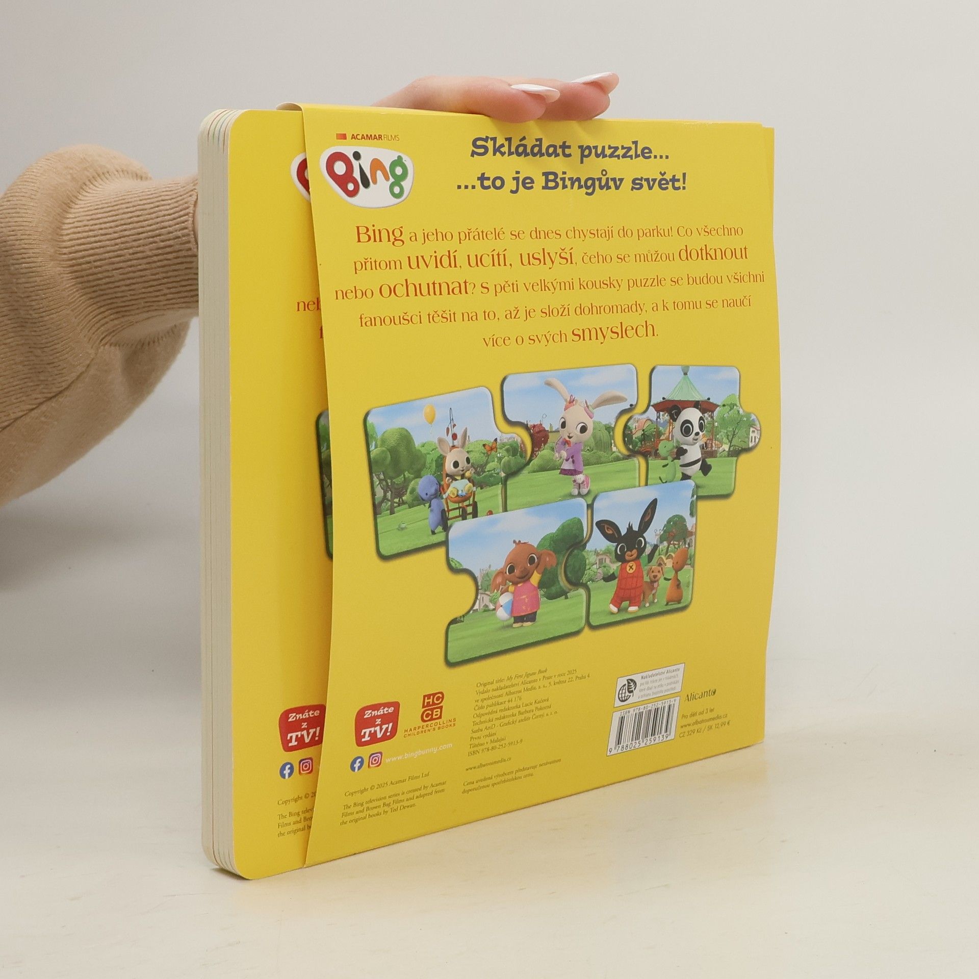 Knížka s pevnými listy a pěti velkými dílky puzzle přináší dětem krátký příběh Binga a jeho kamarádů.