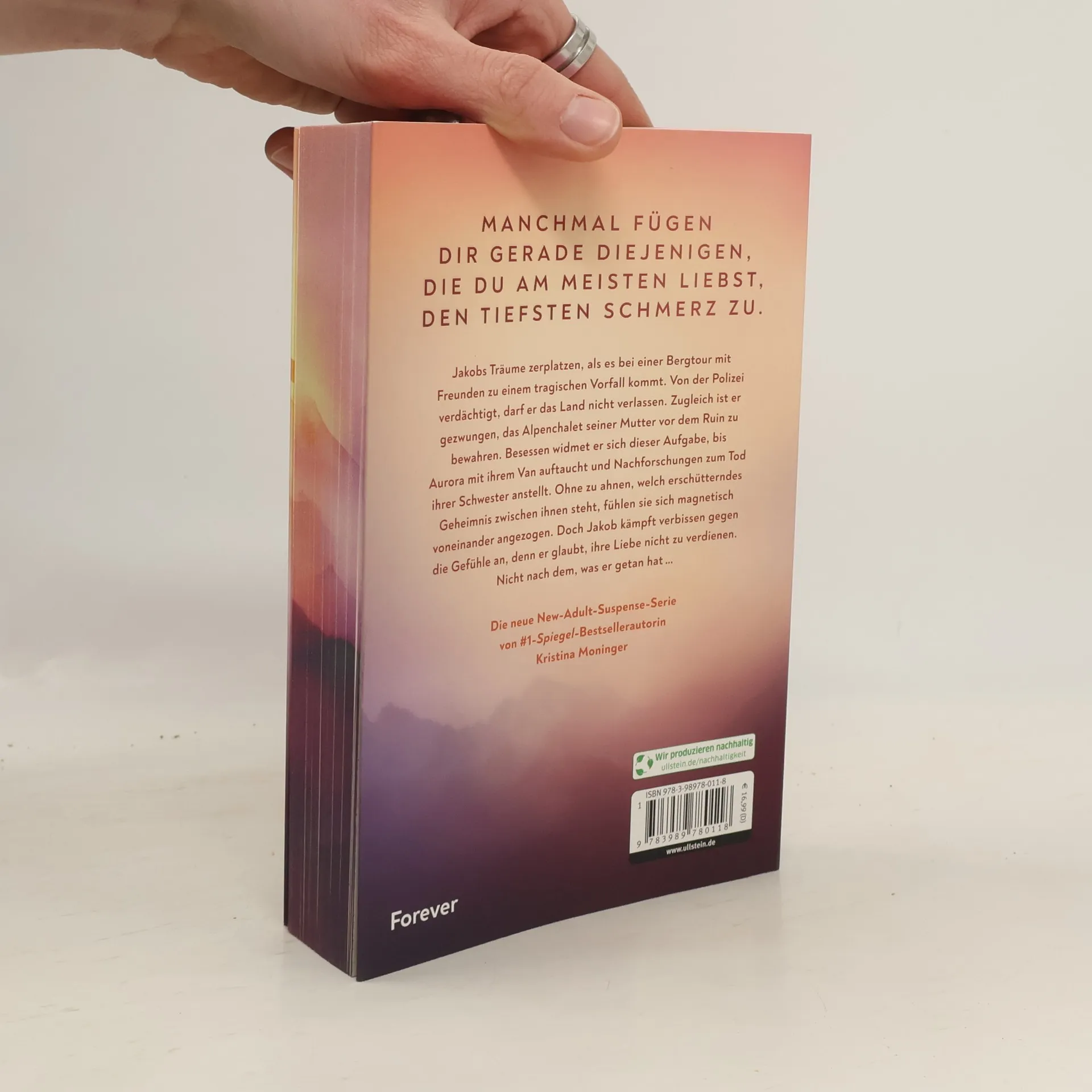 - nur die erste Auflage mit Motivfarbschnitt - Manchmal fügen dir gerade die, die du am meisten liebst, den tiefsten Schmerz zu. Jakobs Träume zerplatzen, als es bei einer Bergtour mit Freunden zu einem tragischen Vorfall kommt. Von der Polizei verdächtigt, darf er das Land nicht verlassen. Zugleich ist er gezwungen, das Alpenchalet seiner Mutter vor dem Ruin zu bewahren. Besessen widmet er sich dieser Aufgabe, bis Aurora mit ihrem Van auftaucht und Nachforschungen zum Tod ihrer Schwester anstellt. Ohne zu ahnen, welches erschütternde Geheimnis zwischen ihnen steht, fühlen sie sich magnetisch voneinander angezogen. Doch Jakob kämpft verbissen gegen die Gefühle an, denn er glaubt, ihre Liebe nicht zu verdienen. Nicht nach dem, was er getan hat … Der Auftakt der berührenden New-Adult-Suspense-Serie von #1-Spiegel-Bestsellerautorin Kristina Moninger »Fesselnd, authentisch, romantisch. Kristina Moninger schreibt wahrhaftig meisterhaft.« SPIEGEL-Bestsellerautorin Kathinka Engel Tropen: Grumpy x Sunshine, Forced Proximity, Suspense