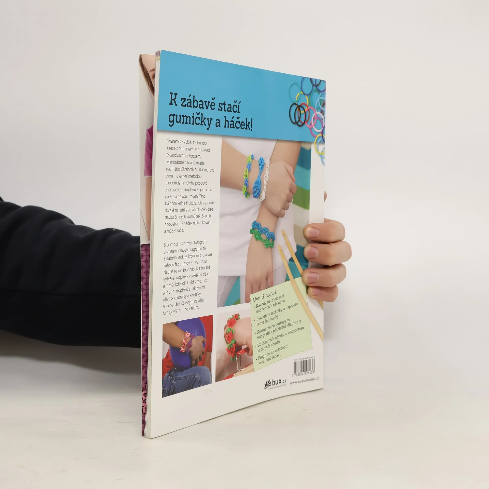 Tato báječná kniha ukáže, jak si pořídit skvělé náramky a náhrdelníky jen za pomoci oboustranného háčku na háčkování. Názorné fotografie a srozumitelné diagramy krok za krokem provedou každou fází zhotovení cool doplňku v jakékoli délce a téměř kdekoli. Uvidíte možnosti zdobení doplňků atraktivními přívěsky, korálky a knoflíky. A k dvanácti úžasným návrhům tu objevíte mnoho variant. Gumičkování s háčkem – celodenní kreativní zábava!
