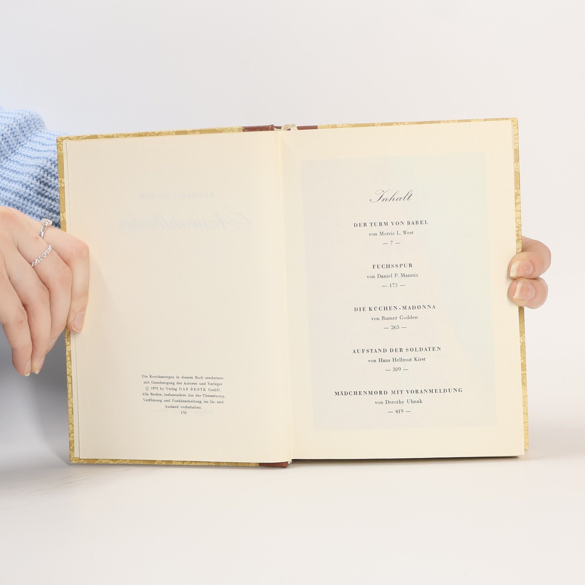Reader's Digest-Auswahlbücher. Der Turm von Babel. Fuchsspur. Die Küchen Madonna. Aufstand der Soldaten. Madchenmord mit Voranmeldung, Various authors