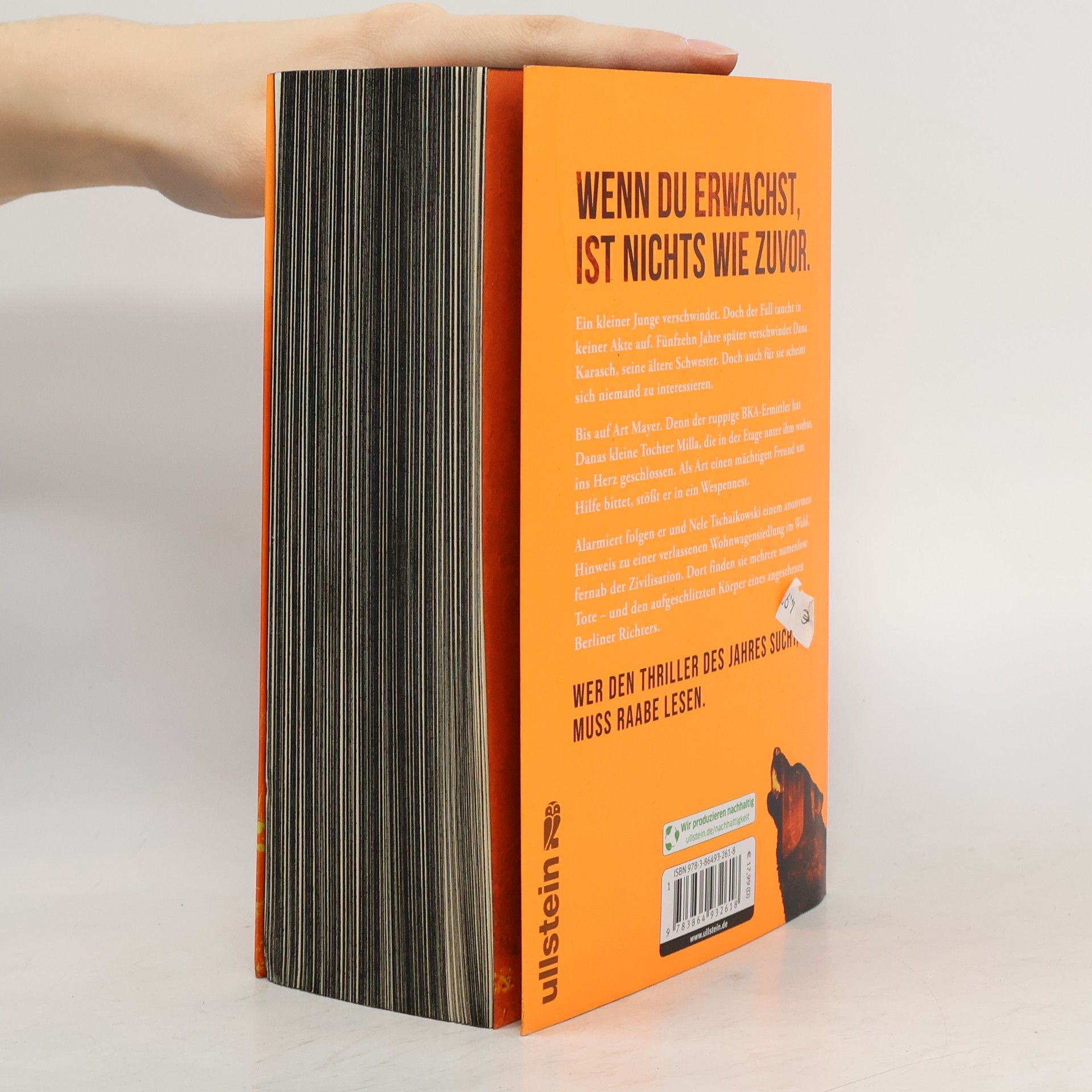 Wenn Du erwachst, ist nichts wie zuvor. Ein kleiner Junge verschwindet. Doch der Fall taucht in keiner Akte auf. Fünfzehn Jahre später verschwindet Dana Karasch, seine ältere Schwester. Doch auch für sie scheint sich niemand zu interessieren. Bis auf Art Mayer. Denn der ruppige BKA-Ermittler hat Danas kleine Tochter Milla, die in der Etage unter ihm wohnt, ins Herz geschlossen. Als Art einen mächtigen Freund um Hilfe bittet, stößt er in ein Wespennest. Ein anonymer Hinweis führt ihn und Nele Tschaikowski zu einer verlassenen Wohnwagensiedlung im Wald, fernab der Zivilisation. Dort finden sie mehrere namenlose Tote – und den aufgeschlitzten Körper eines angesehenen Berliner Richters. »Figuren, Plot, Timing – hier stimmt einfach alles.« krimi-couch.de Wer den Thriller des Jahres sucht, kommt an Marc Raabe nicht vorbei.