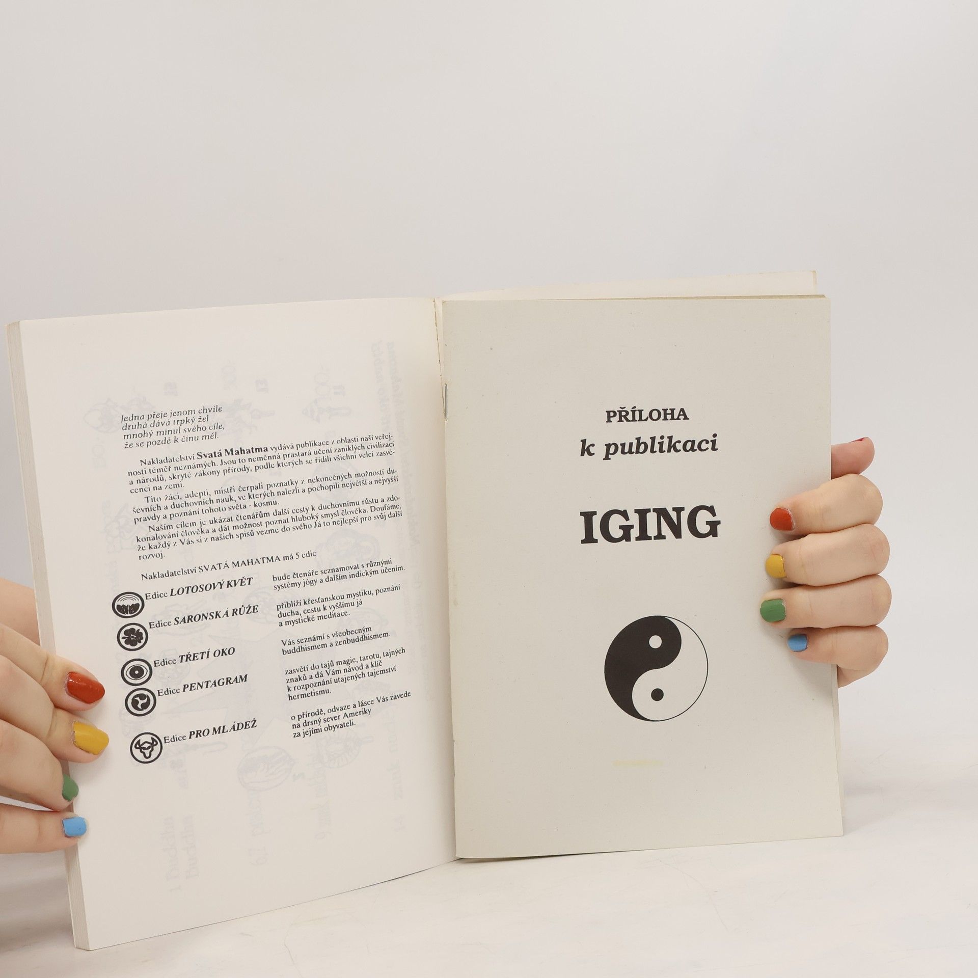 IGING Staročínská kniha o věštění, přeměnách, projevu ducha, jang - jin. Tato kniha je dílem zajímavým a to nejen svou historií, ale také svým hlubokým obsahem. Máme před sebou dílo, jehož původ sahá více než tři tisíce let nazpět a na němž se podílelo mnoho starých čínských světců a mudrců.