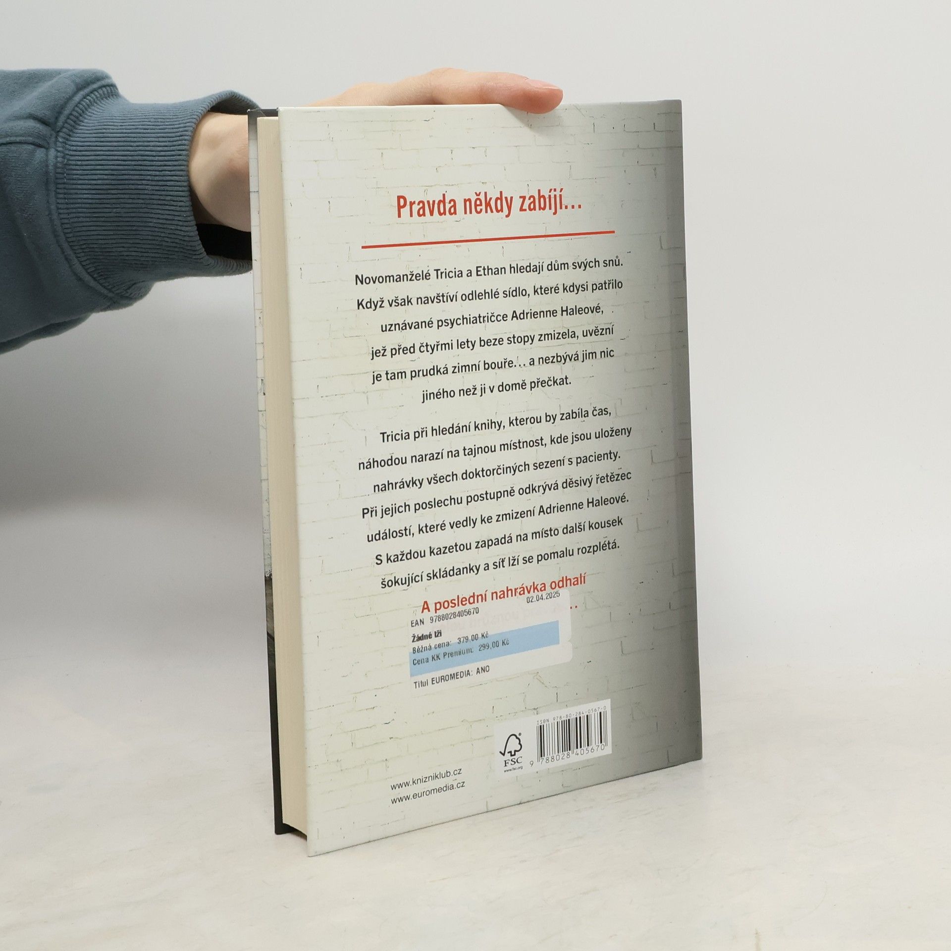 Novomanželé Tricia a Ethan hledají dům svých snů. Když však navštíví odlehlé sídlo, které kdysi patřilo uznávané psychiatričce Adrienne Haleové, jež před čtyřmi lety beze stopy zmizela, uvězní je tam prudká zimní bouře… a nezbývá jim nic jiného než ji v domě přečkat. Tricia náhodou narazí na tajnou místnost, kde jsou uloženy nahrávky všech doktorčiných sezení s pacienty. Při jejich poslechu postupně odkrývá děsivý řetězec událostí, které vedly ke zmizení doktorky Haleové. S každou kazetou zapadá na místo další kousek šokující skládanky a síť lží se pomalu rozplétá. A poslední nahrávka odhalí celou hrůznou pravdu.