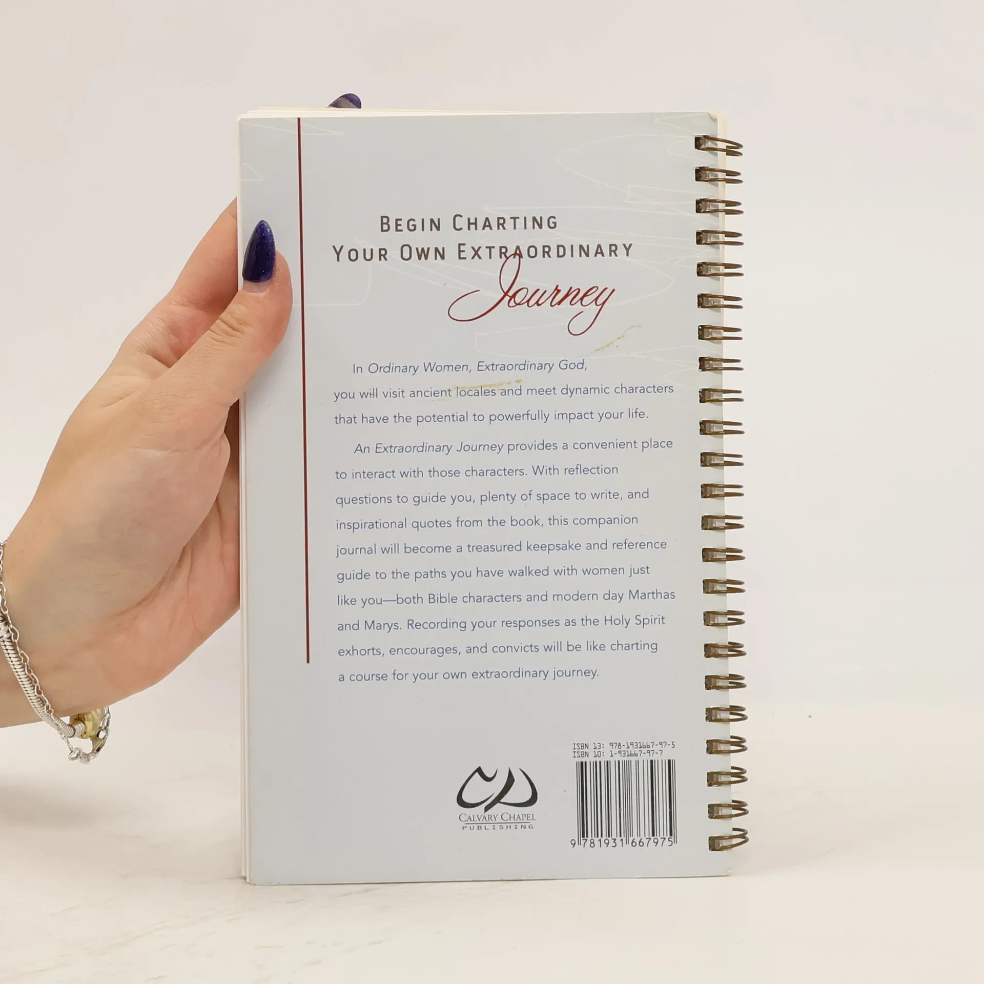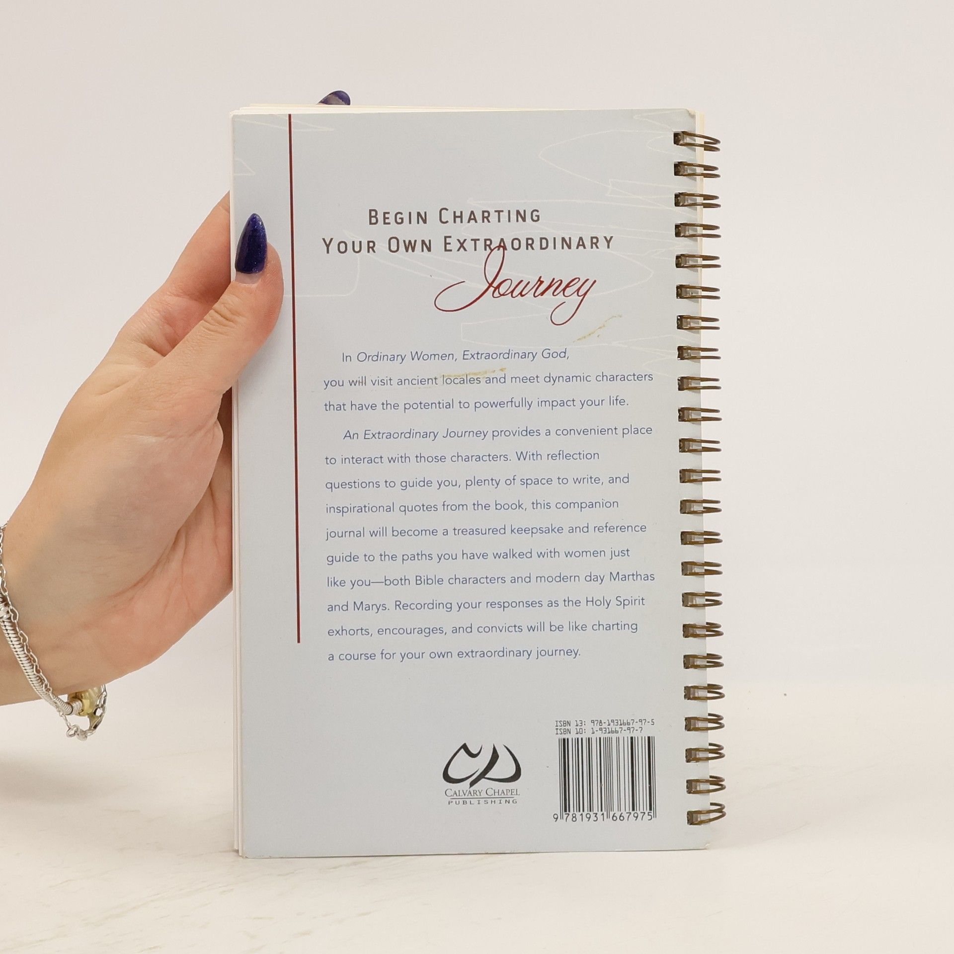 Begin Charting Your Own Extraordinary Journey. In Ordinary Women, Extraordinary God, you will visit ancient locales and meet dynamic charcters that have the potential to powerfully impact your life. An Extraordinary Journey provides a convenient place to interact with those characters. With reflection questions to guide you, plenty of space to write, and inspirational quotes from the book, this companion journal will become a treasured keepsake and reference guide to the paths you have walked with women just like like you-both Bible characters and modern day Marthas and Marys. Recording your responses as the Holy Spirit Exhorts, encourages, and convicts will be like charting a course for your own extraordinary journey.