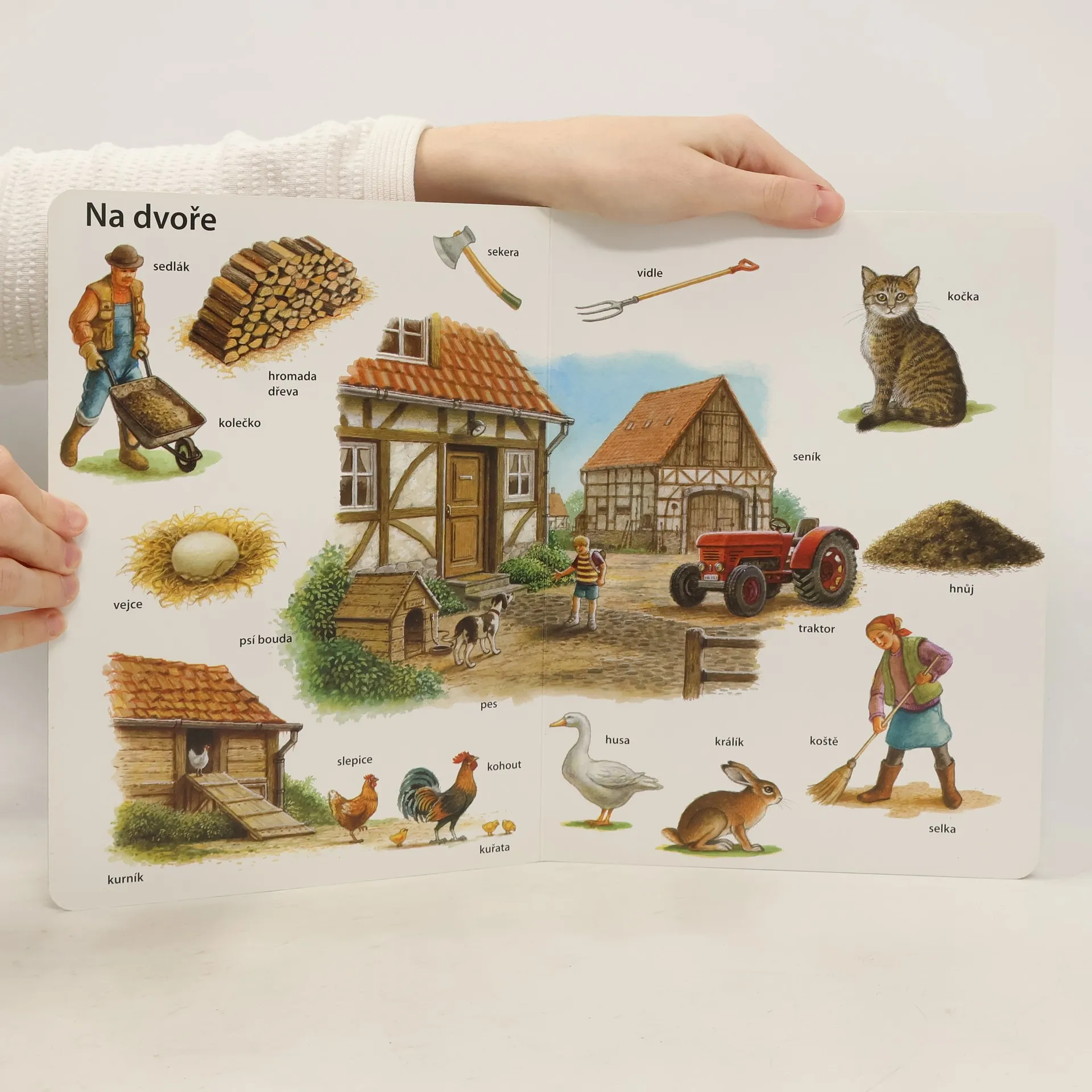 Které stroje se používají na statku? Která zvířata jsou ve stáji a která na pastvě? Co pěstuje selka na zahradě? Díky naší knížce objeví děti kus nového světa, který je zaujme a zabaví.