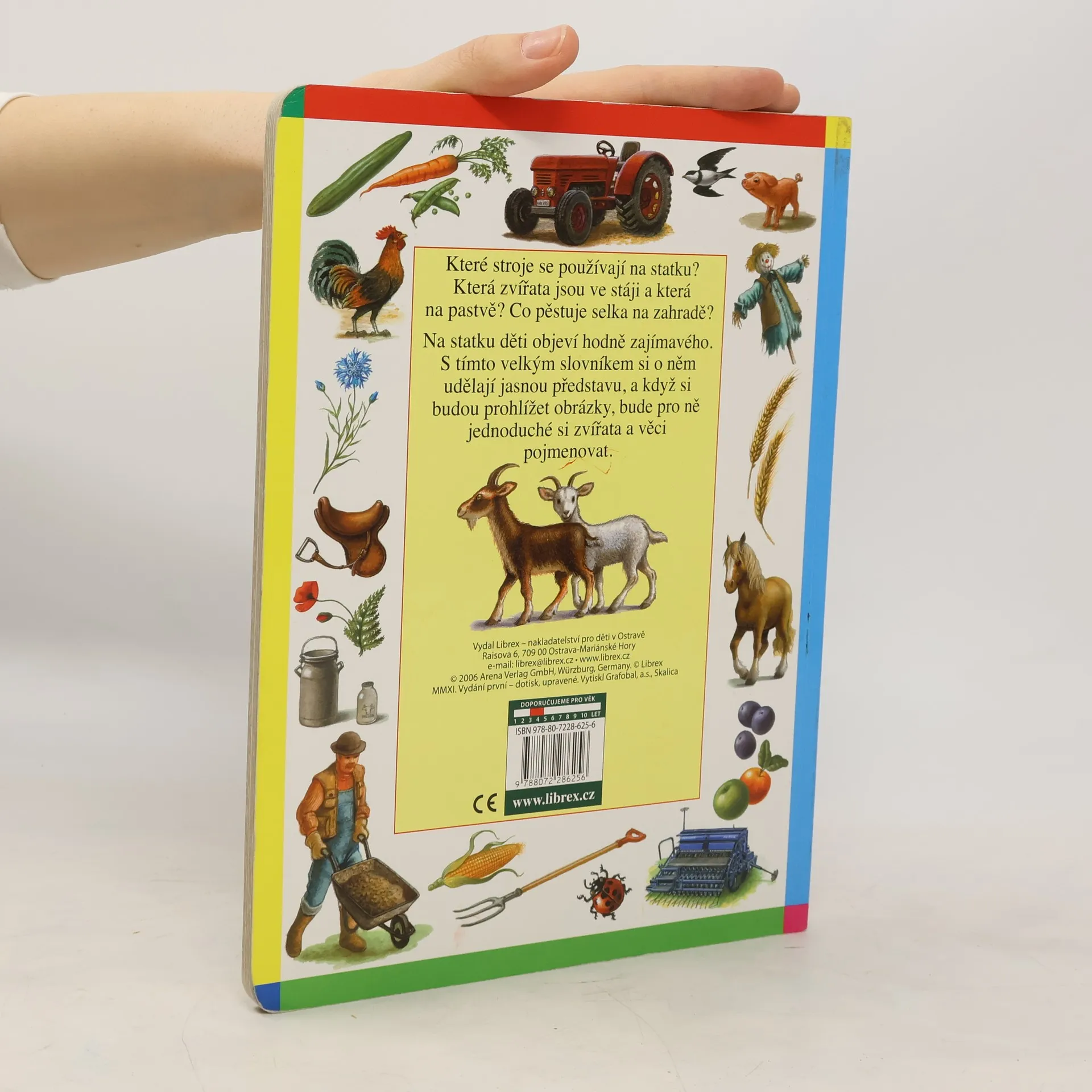 Které stroje se používají na statku? Která zvířata jsou ve stáji a která na pastvě? Co pěstuje selka na zahradě? Díky naší knížce objeví děti kus nového světa, který je zaujme a zabaví.