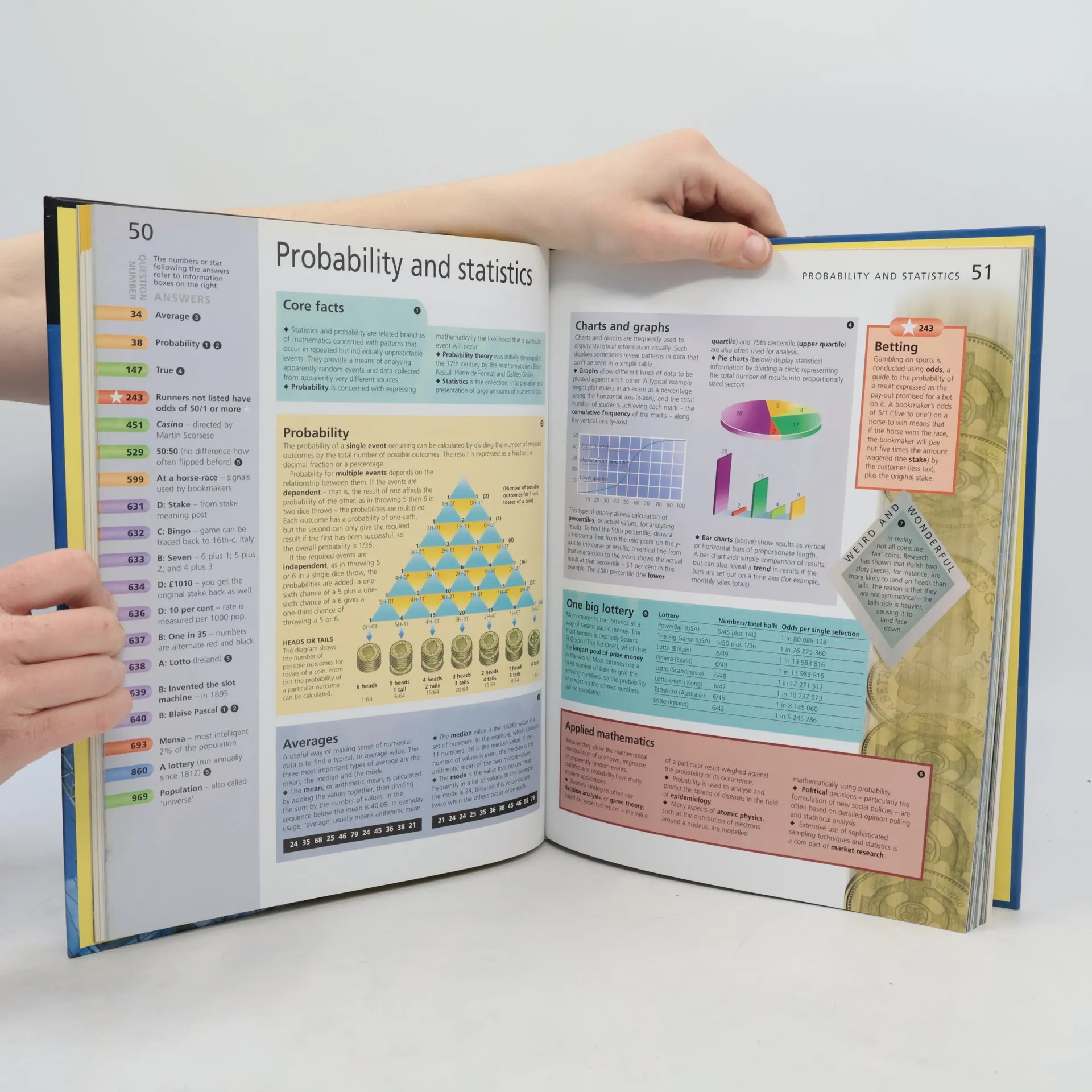 There are 100 quizzes of 10 questions each, graded and colour-coded for difficulty. You can use these to test what you already know about the world of science and technology but they will also lead you into finding out more about the subject, as each question is accompanied by a cross-reference to the relevant pages in the reference section. These pages give you the answer to the question plus masses of other interesting information on the topic. There's also a quick answer section at the back of the book with a blank question and answer sheet. The core reference section is packed with facts on the various branches of science and their application in the world around you. Learn about the key developments in science and technology through the ages. Find out how buildings are constructed; how electricity works; how trains, cars and planes operate and the technology behind them; learn all about the development of TVs, radios, photography, computers; the structure of living organisms; genetics, DNA and much, much more. simply want to browse, you will find that each fascinating piece of information leads you on to discover another and another and another...