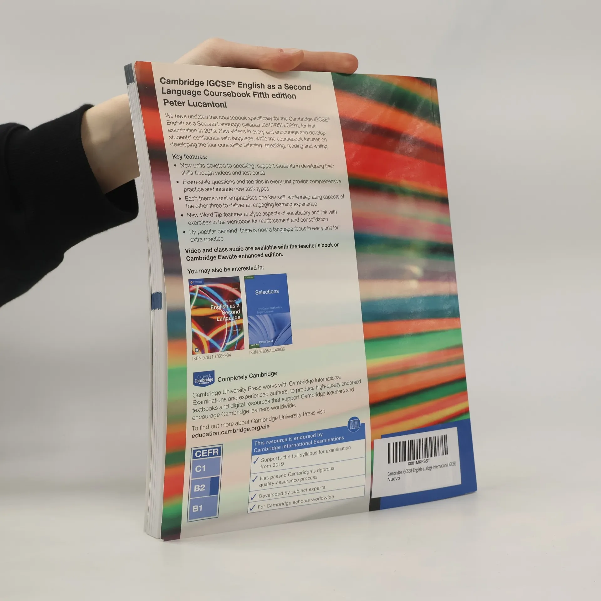 Supports students studying for Cambridge IGCSE® English as a Second Language (ESL). This fully updated print Coursebook is designed to support students studying for Cambridge International Examinations IGCSE® English as a Second Language syllabus (0510/0511/0991) for examination in 2019. With carefully scaffolded content, this easy to navigate coursebook has a language focus in each unit and offers new word and top tips. Each unit is themed and takes an integrated skills approach while emphasising a core skill. At the end of each chapter students can reflect and develop on what they have learnt, all to help build students' language skills and confidence in English as the course progresses.