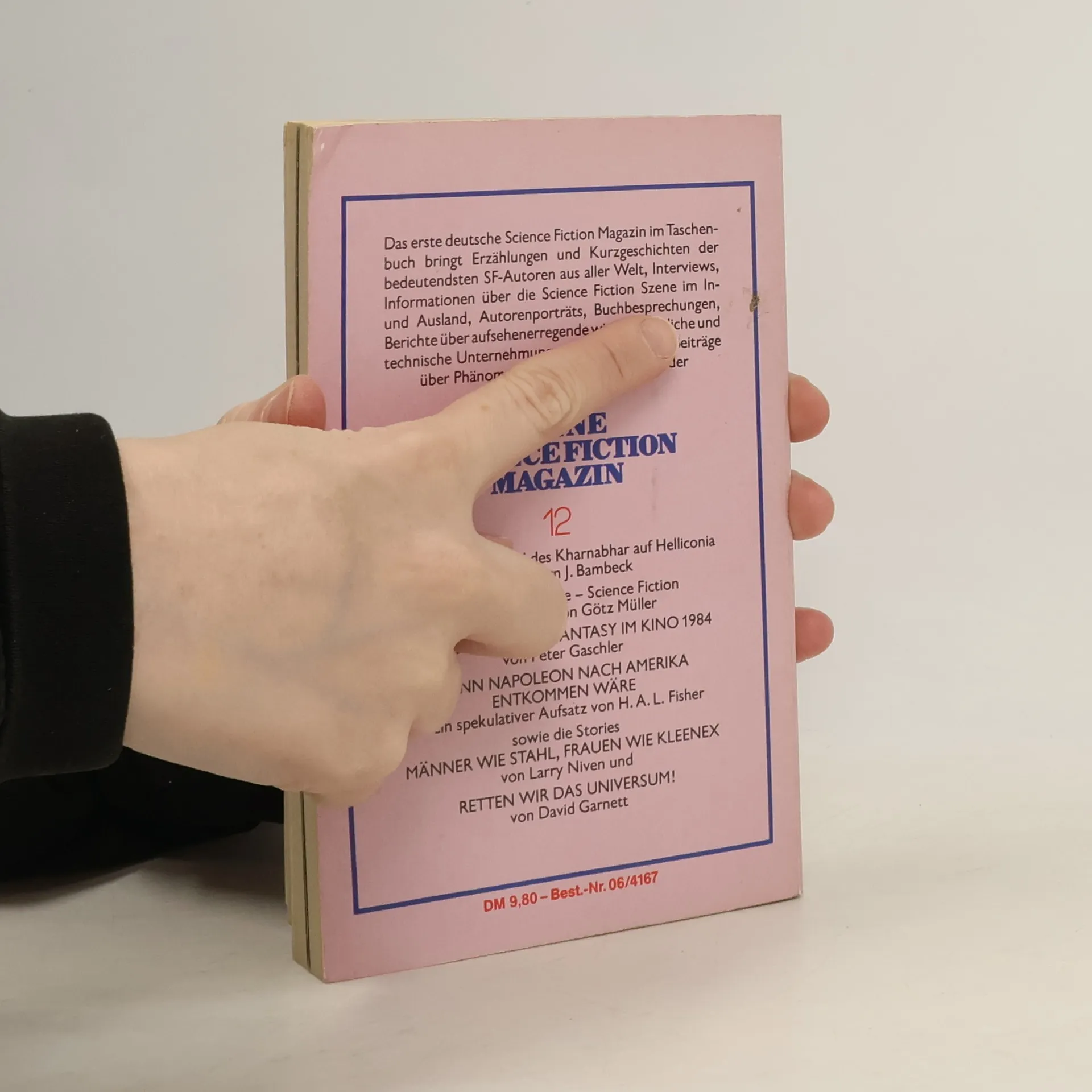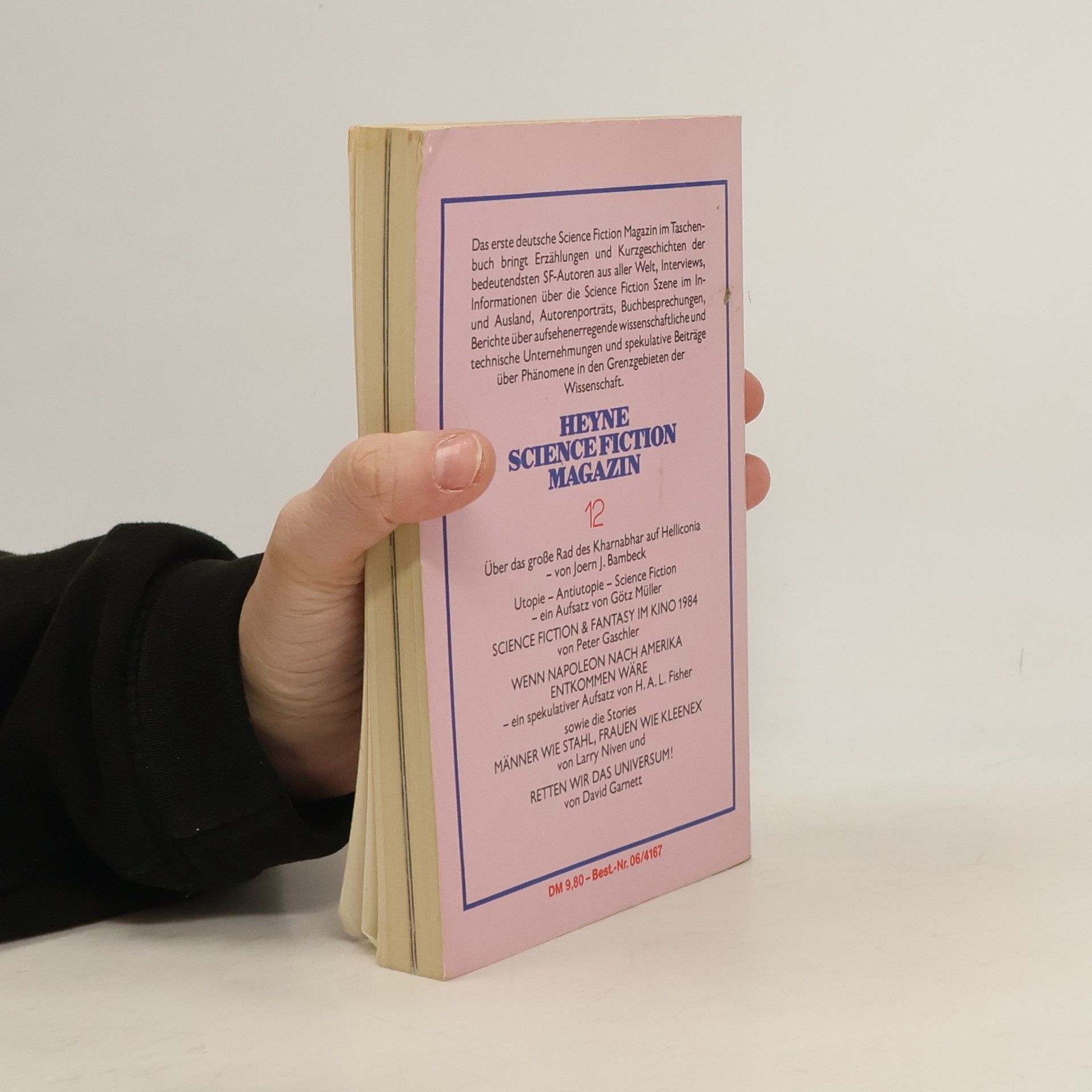 Inhalt: Brian W. Aldiss - Helliconia: Wie und Warum (Helliconia: How and why (1984)) Uwe Anton - Aus deutschen und anderen Landen Joern J. Bambeck - Das grosse Rad des Kharnabhar auf Helliconia H.A.L. Fisher - Wenn Napoleon nach Amerika entkommen waere (If Napoleon had escaped to America (1931)) David S. Garnett - Retten wir das Universum! (Saving the Universe (1984)) Peter M. Gaschler - Science Fiction und Fantasy im Kino '84 2 Michael C. Goodwin - Alan Dean Fosters Homanx-Universum (A guide to Alan Dean Foster's commonwealth (1983)) Linus Hauser - Wurmgott Heilbringer Jeff Hecht - Laserwaffen - Ausweg oder Bedrohung ? (Laser weapons: Promise or threat ? (1984)) Wolfgang Jeschke - Editorial Herbert Kiessling - Brief aus der DDR Goetz Mueller - Utopie - Antiutopie - Science Fiction Michael Nagula - Hurra, wir leben noch ! Larry Niven - Maenner wie Stahl, Frauen wie Kleenex (Man of steel, woman of Kleenex (1971)) Michael Schwelien - Den Himmel blankputzen (1984) Hermann Urbanek - Edition Phantasia Dietrich Wachler - Das Experiment mit dem Menschen