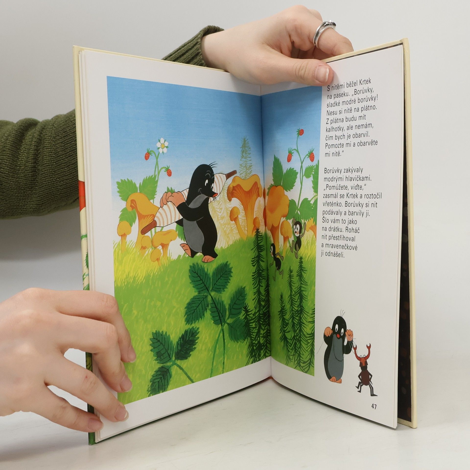Jedna z nejznámějších a nejpůvabnějších knížek o tom, jak se dílo podaří, když se všichni spojí a každý dělá, co umí. Krtek zatouží po krásných modrých kalhotkách, sám ale neumí ani tkát, ani stříhat, šít nebo barvit látku. Poprosí tedy o pomoc své kamarády – raka, rákosníčka, žabku, čápa, ježka, pavoučky a mravenečky. Ti mu rádi pomohou, a Krtek se nakonec může radovat z nových kalhotek s velkými kapsami, kam může schovat své malé poklady.