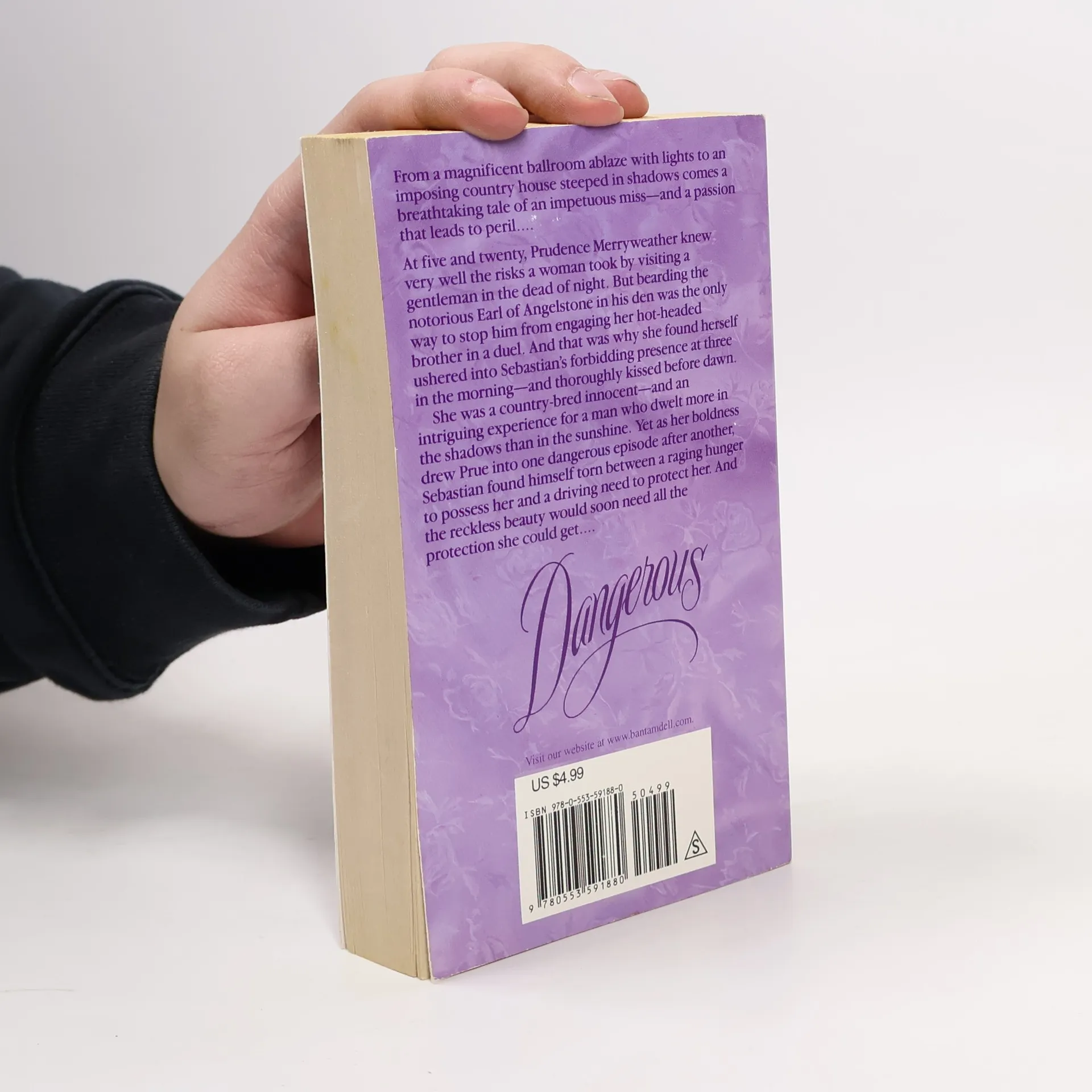 From a magnificent ballroom ablaze with lights to an imposing country house steeped in shadows comes a breathtaking tale of an impetuous miss--and a passion that leads to peril.... At five and twenty, Prudence Merryweather knew very well the risks a woman took by visiting a gentleman in the dead of night. But bearding the notorious Earl of Angelstone in his den was the only way to stop him from engaging her hot headed brother in a duel. And that was why she found herself ushered into Sebastian's forbidding presence at three in the morning--and thoroughly kissed before dawn. She was a country-bred innocent--and an intriguing experience for a man who dwelt more in the shadows than in the sunshine. Yet as her boldness drew Prue into one dangerous episode after another, Sebastian found himself torn between a raging hunger to posses her and a driving need to protect her. And the reckless beauty would soon need all the protection she could get....