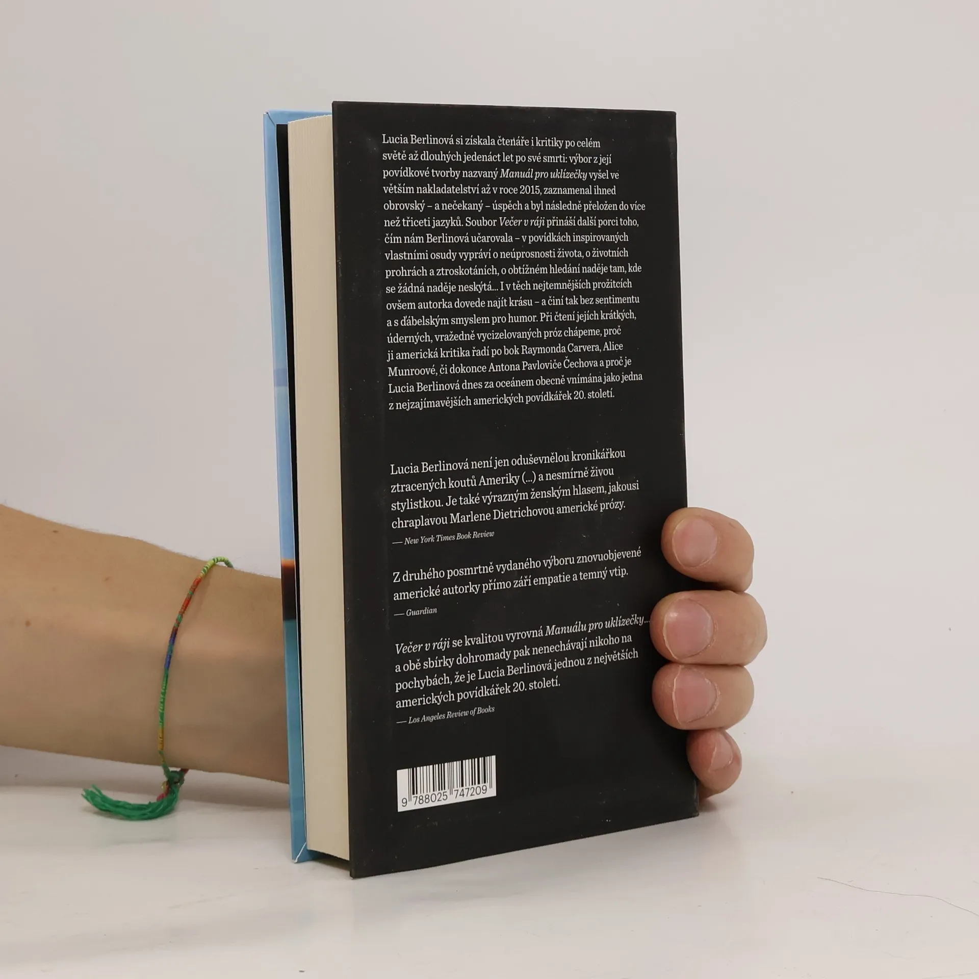 Lucia Berlinová si získala čtenáře i kritiky po celém světě až dlouhých jedenáct let po své smrti: výbor z její povídkové tvorby nazvaný Manuál pro uklízečky vyšel ve větším nakladatelství až v roce 2015, zaznamenal ihned obrovský – a nečekaný – úspěch a byl následně přeložendo více než 30 jazyků. Soubor Večer v ráji přináší další porci toho, čím nám Berlinová učarovala – v povídkách inspirovaných vlastními osudy vypráví o neúprosnosti života, o životních prohrách a ztroskotáních, o obtížném hledání naděje tam, kde se žádná naděje neskýtá… I v těch nejtemnějších prožitcích ovšem autorka dovede najít krásu – a činí tak bez sentimentu a s ďábelským smyslem pro humor. Při čtení jejích krátkých, úderných, vražedně vycizelovaných próz chápeme, proč ji americká kritika řadí po bok Raymonda Carvera, Alice Munroové, či dokonce Antona Pavloviče Čechova a proč je Lucia Berlinová dnes za oceánem obecně vnímána jako jedna z nejzajímavějších amerických povídkářek 20. století.