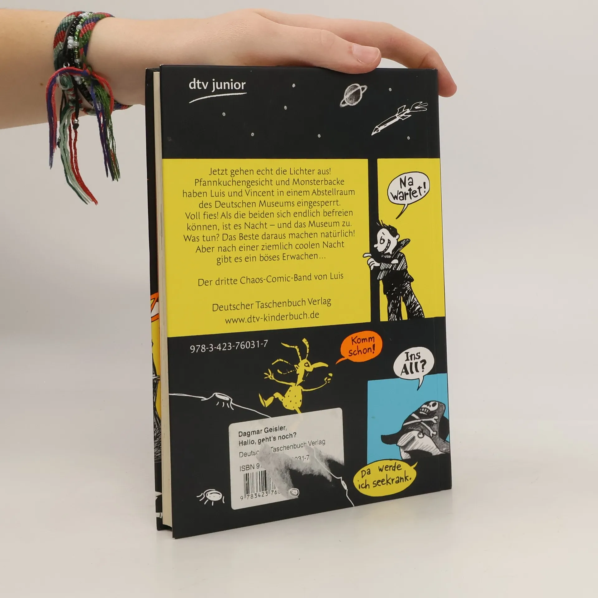 -Comicroman”Luis Chaos Comics von Dagmar Geisler sind eine gelungene Mischung aus Texten und Comicbildern, die Lust auf mehr machen.“Oldenburgische Volkszeitung 02.07.2011 Kurzbeschreibung Jetzt gehen echt die Lichter aus!”Pfannkuchengesicht“und”Monsterbacke“haben sich etwas besonders Fieses überlegt und Luis und Vincent im Deutschen Museum im Bauch eines alten Schiffes eingesperrt. Als Luis und Vincent sich endlich befreien können, ist es Nacht und das Museum zu. Was tun? Das Beste daraus machen natürlich. Aber nach einer ziemlich coolen Nacht gibt es für die zwei ein böses Erwachen ...