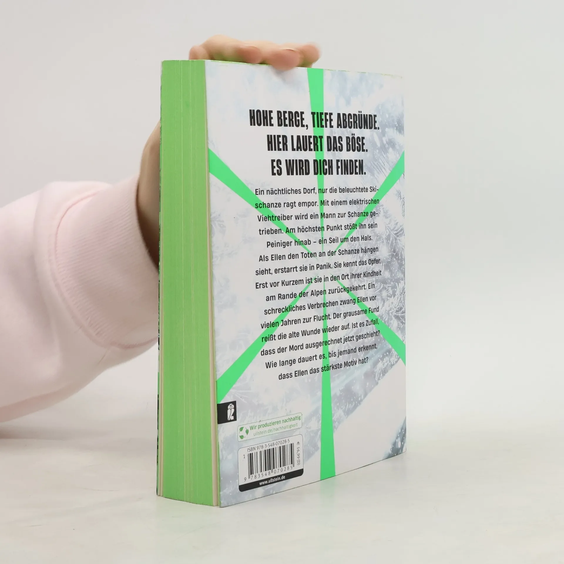 Ein Pageturner über das Lügennetz in einer Dorfgemeinschaft, eine unfassbare Grausamkeit und Rache. Bereit für Lars Menz? Ein nächtliches Dorf, nur die beleuchtete Skischanze ragt empor. Mit einem elektrischen Viehtreiber wird ein Mann zur Schanze getrieben. Am höchsten Punkt stößt ihn sein Peiniger hinab – ein Seil um den Hals. Als Ellen den Toten an der Schanze hängen sieht, erstarrt sie in Panik. Sie kennt das Opfer. Erst vor kurzem ist sie in den Ort ihrer Kindheit am Rande der Alpen zurückgekehrt. Ein schreckliches Verbrechen zwang Ellen vor vielen Jahren zur Flucht. Der grausame Fund reißt die alte Wunde wieder auf. Ist es Zufall, dass der Mord ausgerechnet jetzt geschieht? Wie lange dauert es, bis jemand erkennt, dass Ellen das stärkste Motiv hat? Hohe Berge, tiefe Abgründe. Hier lauert das Böse. Es wird dich finden.