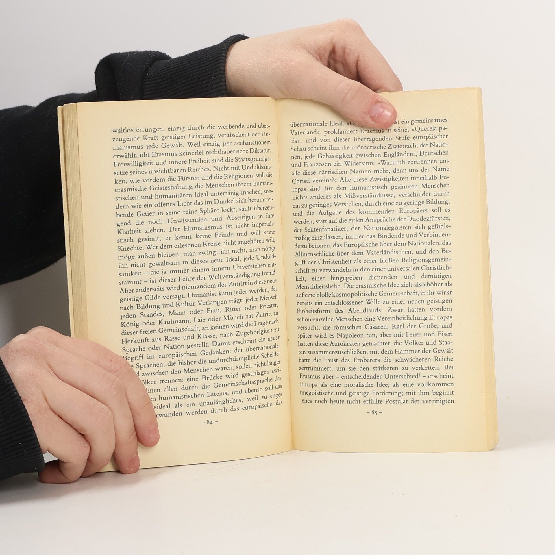 Eine »verschleierte Selbstdarstellung« hat Stefan Zweig sein Erasmus-Buch genannt, mit dem er »Größe und Grenzen des Humanismus« aufzeigt – Triumph und Tragik eines großen, aber zur Tat nicht entschlossenen Denkers, Erasmus von Rotterdam, »der erste bewußte Europäer, der erste streitbare Friedensfreund, der beredteste Anwalt des humanistischen, des weit- und geistesfreundlichen Ideals«, wurde durch seine Kritik an der Theologie und der Kirche zum Wegbereiter der Reformation. Doch er förderte sie nicht, distanzierte sich vielmehr mit seiner eigenen Ansicht über den freien Willen des Menschen von Luthers Meinung. Er riet, als Kurfürst Friedrich ihn im Glaubensstreit zwischen Luther und dem Papst um sein Votum bat, bei deutlicher Sympathie für die Erneuerung der Kirche, »angesehene und unverdächtige Richter« einzusetzen. Erasmus wollte und konnte seine eigene Meinung, vielleicht aus Furcht vor Verantwortung, nicht ausschlaggebend werden lassen. Der wohl berühmteste und gelehrteste Mensch seiner Zeit zog sich so in sich selbst zurück. Denn »der freie, der unabhängige Geist, der sich keinem Dogma bindet und für keine Partei entscheiden will, hat nirgends eine Heimstatt auf Erden«.