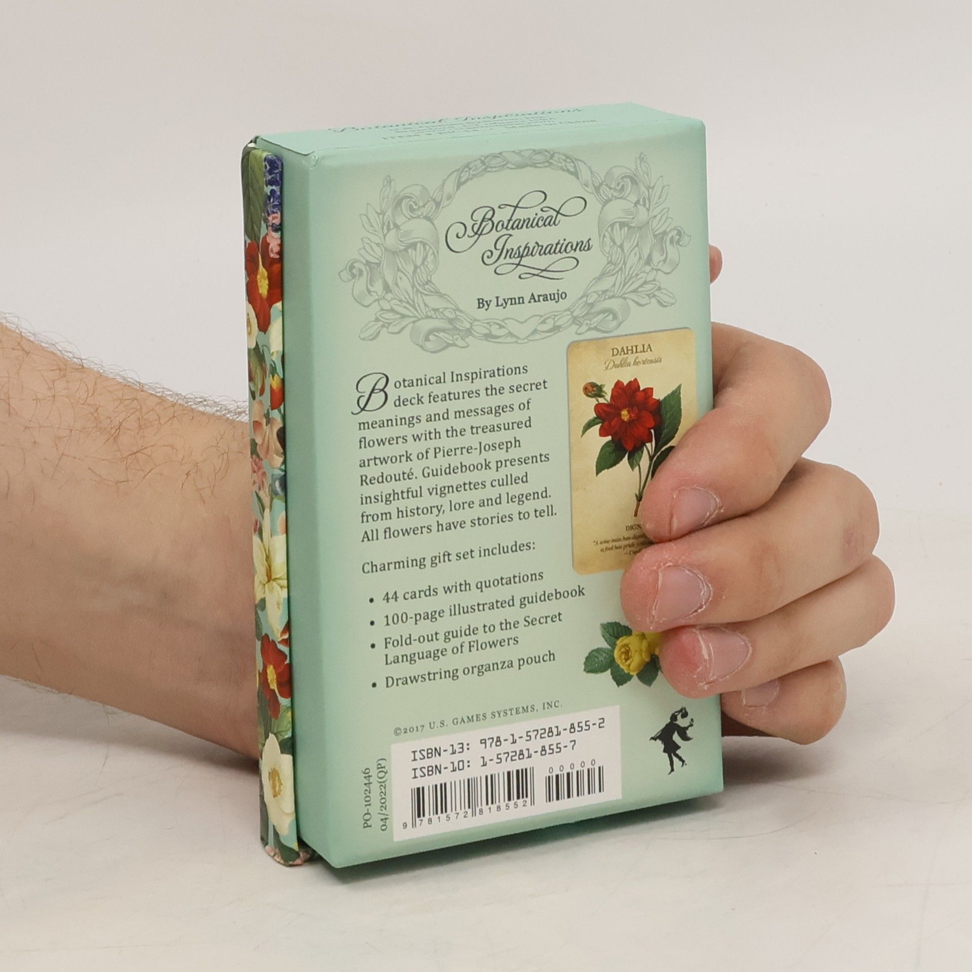 In Victorian England, and in other cultures, flowers were used to convey specific meanings and messages, especially in the coy rituals of courtship. Botanical Inspirations Deck & Book Set brings together the Secret Language of Flowers with the treasured artwork of Pierre-Joseph Redout. Each Botanical Inspirations card features a thoughtful quotation that alludes to the symbolism of the flower. The accompanying guidebook presents inspirational affirmations and narrative vignettes culled from history, mythology, lore and legend. From the demure violet to the noble magnolia, all flowers have stories to tell and lessons to share.This charming gift set includes:44 cards with quotations and flower meanings100-page illustrated guidebook with messages of insight and inspirationFold-out guide to the Secret Language of FlowersDrawstring organza pouch