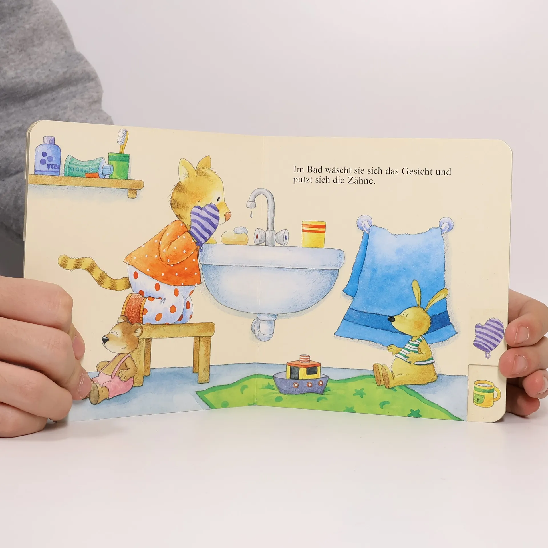 In diesem liebevoll illustrierten Pappbilderbuch erleben Kleine mit der kleinen Katze, was sie selbst jeden Morgen zu Hause erleben: Aufstehen, Waschen und Frühstücken.