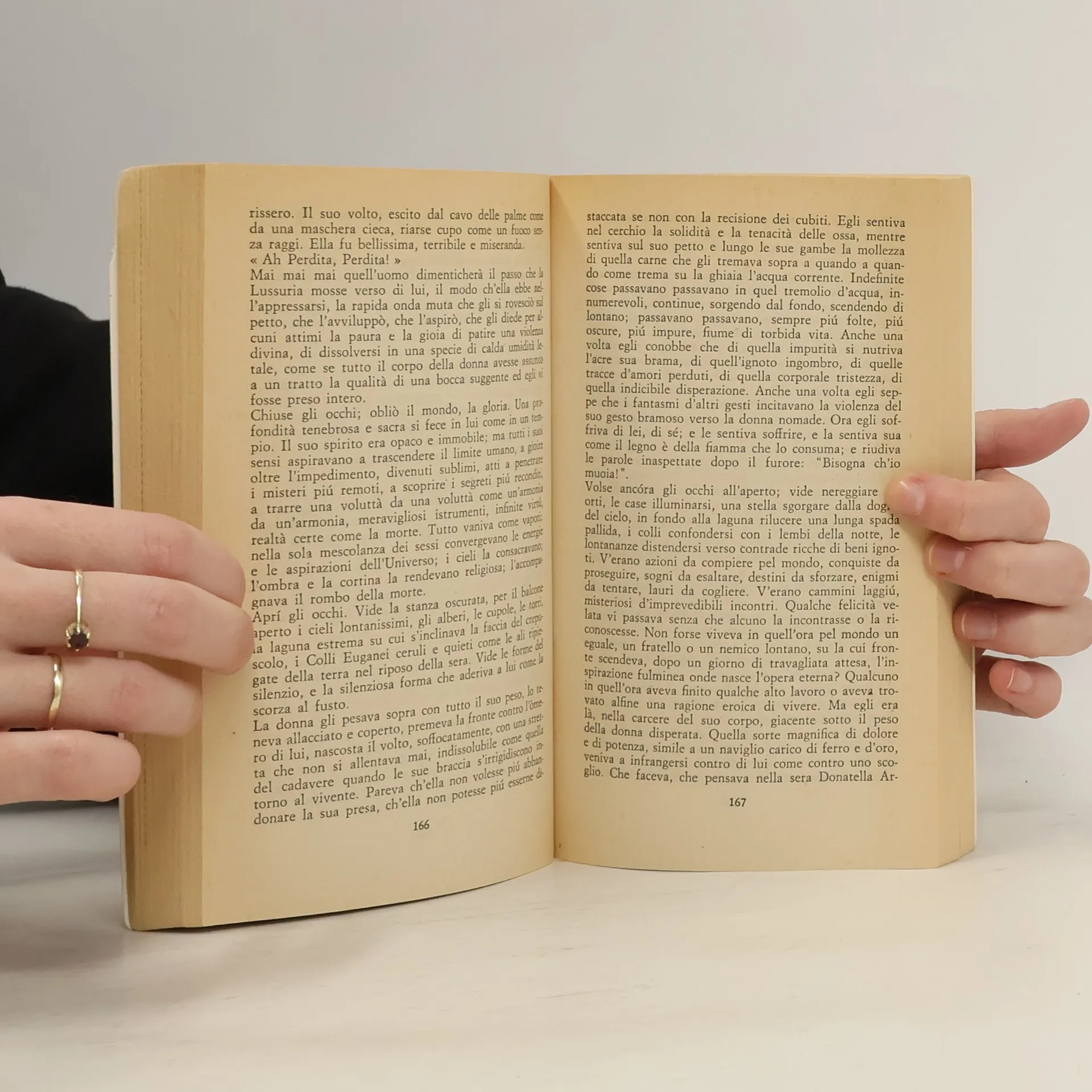 "Quel che si racconta in questo libro è già accaduto e lontano, richiamato come un'epifania dalla ricorrenza di una data che appare nelle ultime pagine 13 febbraio 1883 (morte di Wagner) e 13 febbraio 1900 (chiusura del manoscritto) - e che intreccia romanzo e vita. Così la storia d'amore e il progetto d'arte, entrambi mancati, appartengono alla sfera del rimpianto che inevitabilmente rende languidi i fallimenti e seducenti le illusioni." (Filippo Tuena) Gabriele d'Annunzio, born Gaetano Rapagnetta (1863-1938) was an Italian poet, writer, novelist, dramatist, womanizer and daredevil who went on to have a controversial role in politics as figure-head of the Italian Fascist movement and mentor of Benito Mussolini. His literary works included: "The Child of Pleasure," "The Intruder," "The MAidens of the Rocks," and "The Flame of Life" ("Il Fuoco").