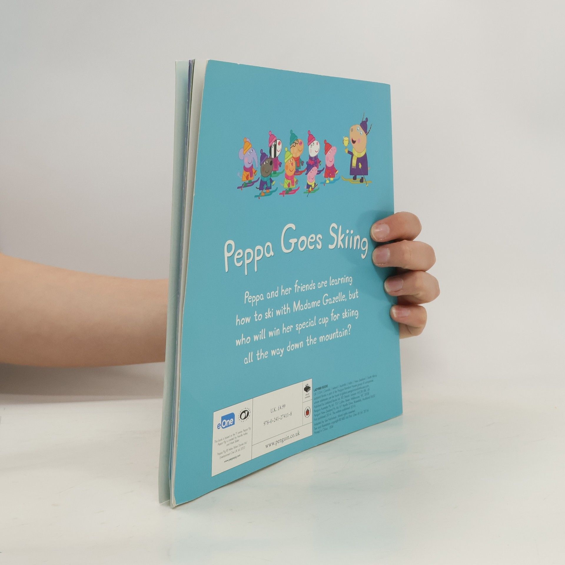 Peppa and her friends are learning how to ski with Madame Gazelle, the skiing world champion. But when Mummy Pig goes on the grown-up slope, she ends up skiing all the way down the mountain! Will Mummy Pig win Madame Gazelle's world championship cup? Find out in this funny Peppa Pig tale that is perfect for reading and sharing together. Peppa storybooks are perfect for exploring first experiences with pre-schoolers.Enjoy more fun and educational Peppa Pig books by Ladybird including: George's New Dinosaur, Pirates Sticker Book and many more!