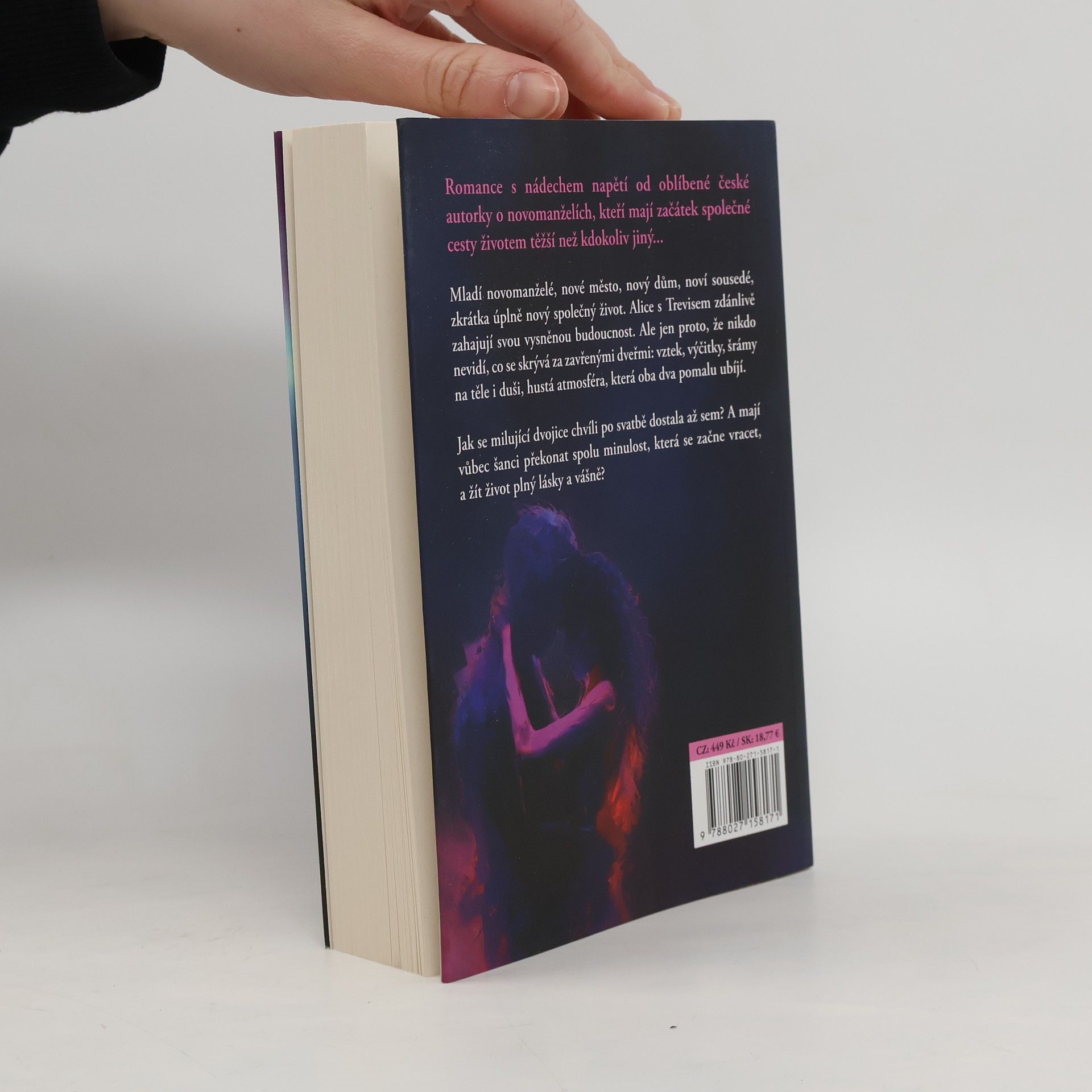 Romance s nádechem napětí o novomanželích, kteří mají začátek společné cesty životem těžší než kdokoliv jiný. Mladí novomanželé, nové město, nový dům, noví sousedé, zkrátka úplně nový společný život. Alice s Trevisem zdánlivě zahajují svou vysněnou budoucnost. Ale jen proto, že nikdo nevidí, co se skrývá za zavřenými dveřmi: vztek, výčitky, šrámy na těle i duši, hustá atmosféra, která oba dva pomalu ubíjí. Jak se milující dvojice chvíli po svatbě dostala až sem? A mají vůbec šanci překonat spolu minulost, která se začne vracet, a žít život plný lásky a vášně? Nakladatelská anotace.