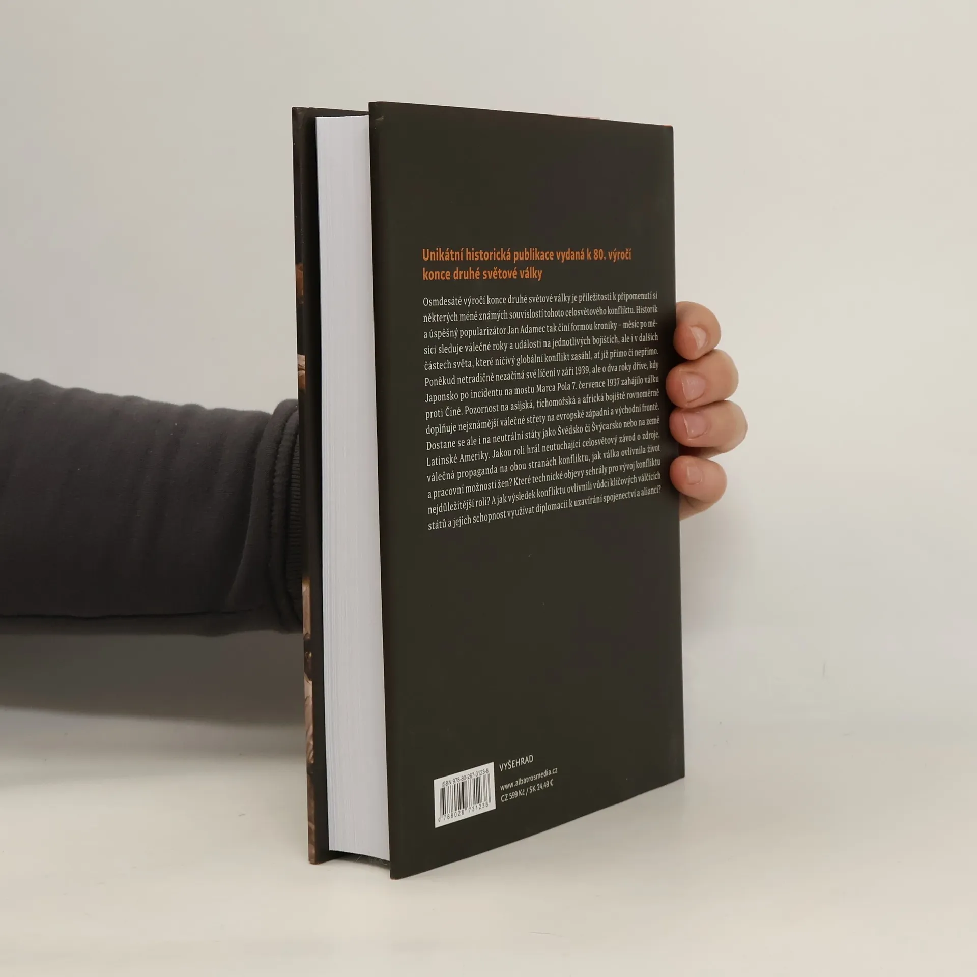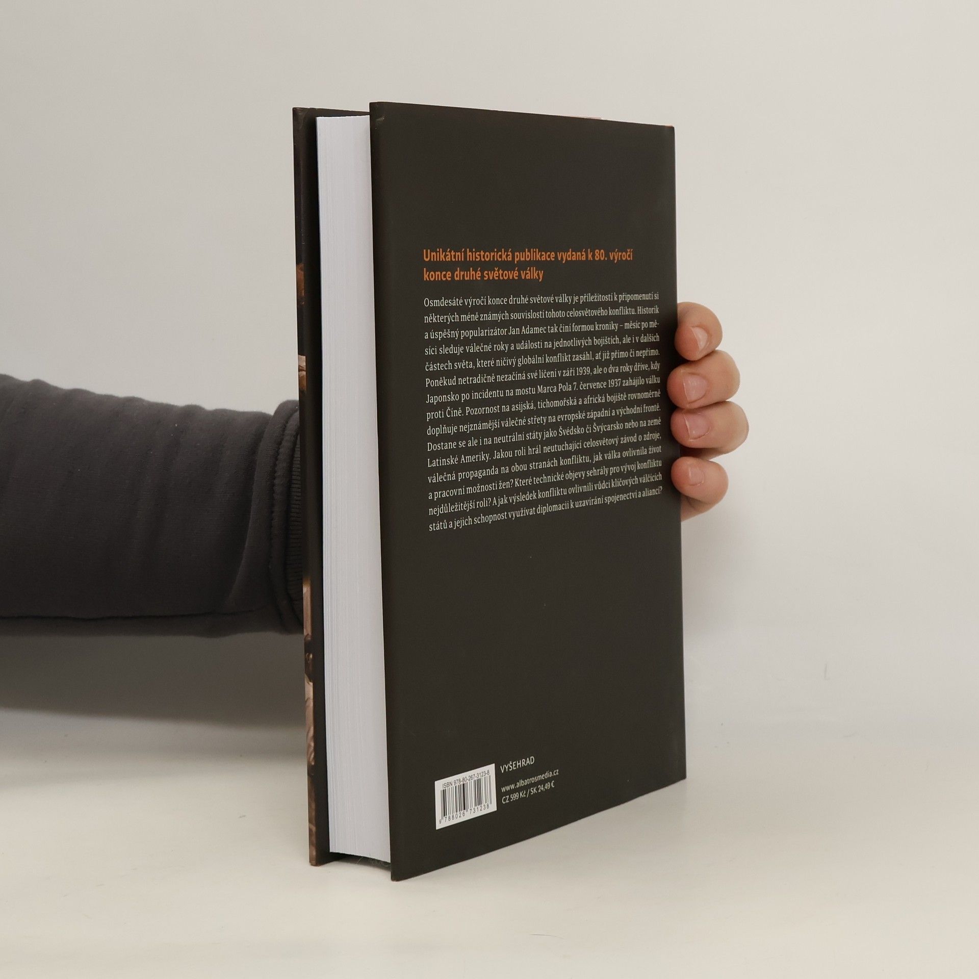 Výročí osmdesáti let od konce druhé světové války je příležitostí k připomenutí si některých méně známých souvislostí tohoto celosvětového konfliktu. Historik a úspěšný popularizátor Jan Adamec tak činí formou kroniky – měsíc po měsíci sleduje válečné roky a události na jednotlivých bojištích, ale i v dalších částech světa, které ničivý globální konflikt zasáhl. Poněkud netradičně nezačíná své líčení v září 1939, ale o dva roky dříve, kdy Japonsko po incidentu na mostu Marca Pola 7. července 1937 zahájilo válku proti Číně. Pozornost na asijská, tichomořská a africká bojiště rovnoměrně doplňuje nejznámější válečné střety na evropské západní a východní frontě. Kromě samotných válečných akcí se bohatě dostává i na diplomacii, která ani v době válečného konfliktu samozřejmě neustala. Poutavá kniha dává nahlédnout do mnoha méně známých souvislostí druhé světové války.