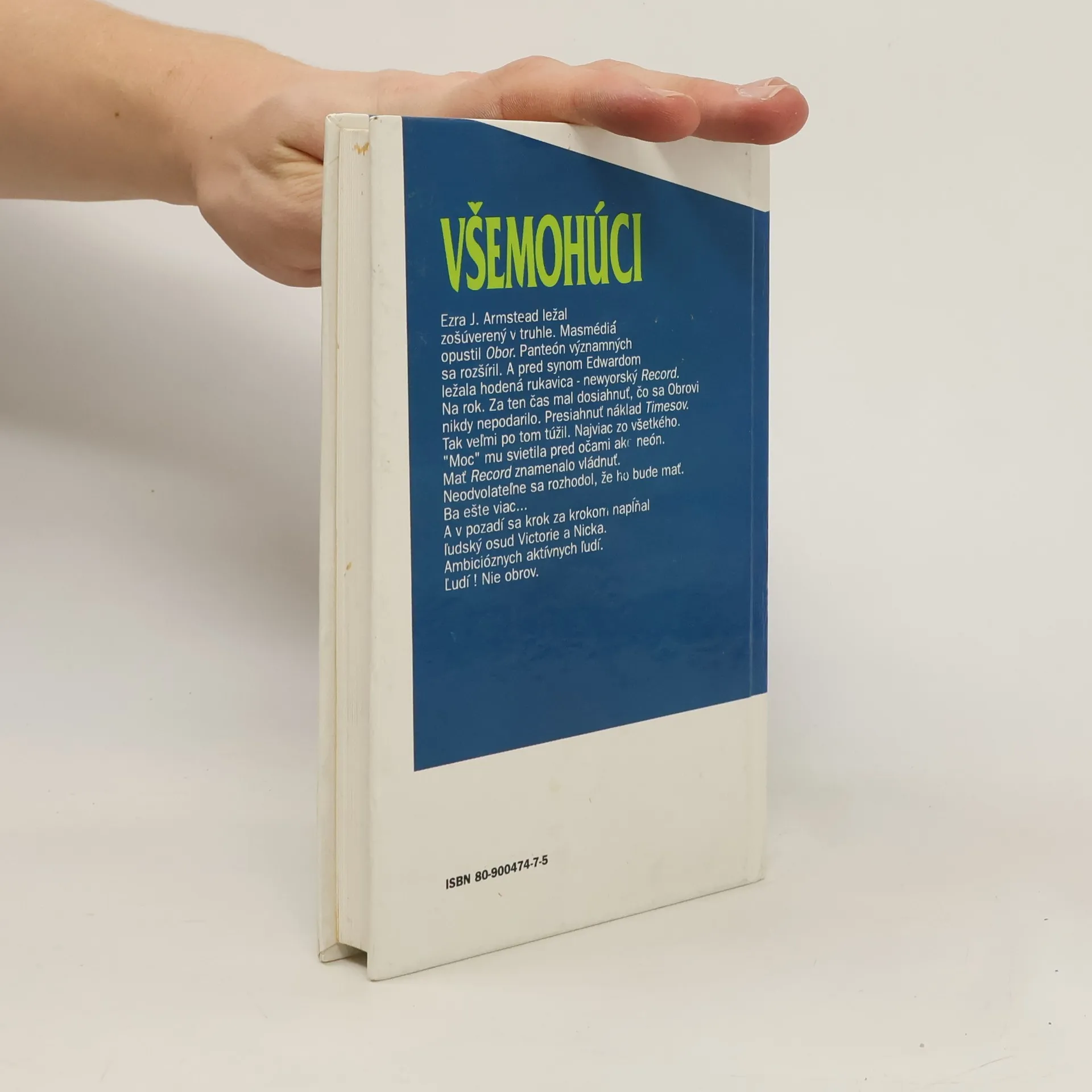 Ezra Armstead, nazývaný Obor ležal v truhle. Pres synom Edwardom ležala hodená rukavica - newyorský Record. Za ten čas musí dosiahnuť to, čo sa Obrovi nepodarilo - presiahnuť náklad Timesov. Moc mu svietila pred očami ako neón..