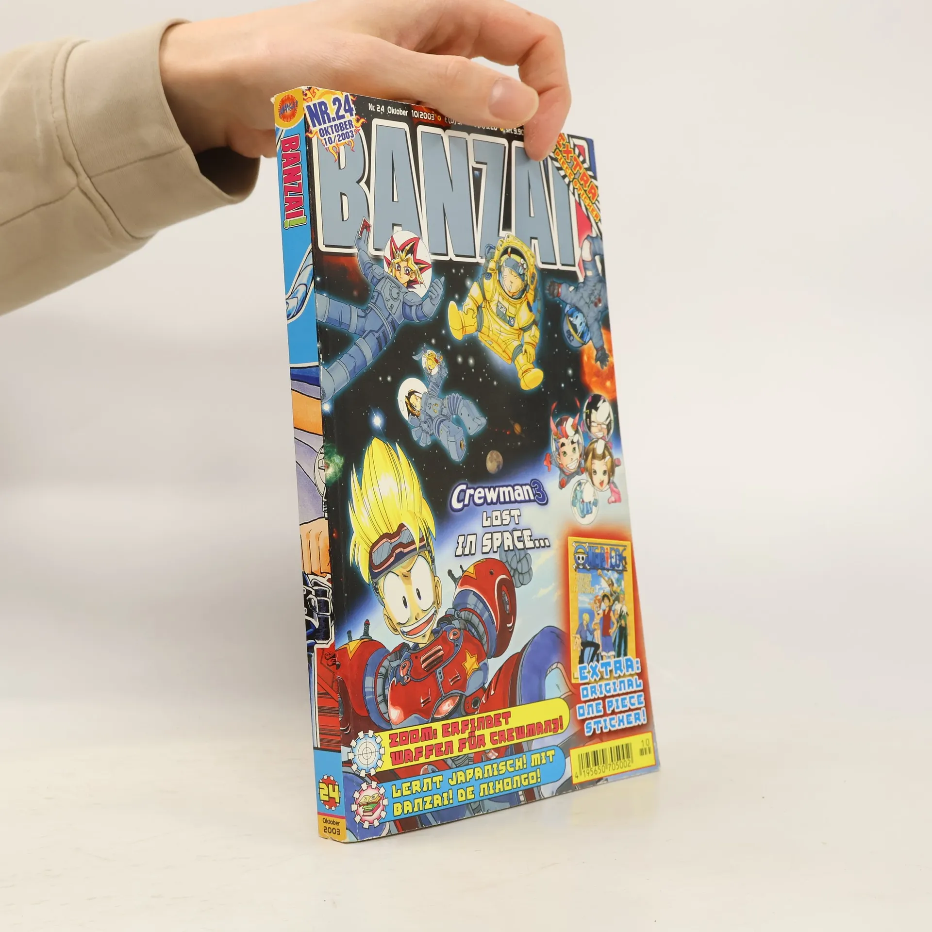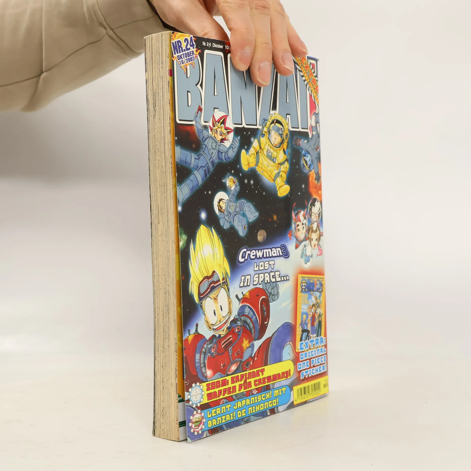 Gute Manga kommen in den Himmel, die besten kommen in BANZAI!§§24 - und: ins Weltall! Keine Angst, das beste Manga-Magazin des Universums ist nicht größenwahnsinnig geworden, es passieren darin nur wieder ganz überdimensionale Dinge: Schlagt die Zoom-Seiten auf und verliert euch in einem 6-seitigen Wahnsinns-Special über Crewman3. "Lost in Space" ist der Titel und "Werdet Waffen-Creator!" der Auftrag bzw. euer Auftrag, denn ihr sollt euch mal wieder kreativ in Geschehen und Story einbringen. Danach mal eben Japanisch lernen, mit der 1. Folge von BANZAI! de Nihongo, und dann die YU-GI-OH Card-Game Tricks und Tipps studieren - so sieht das Niveau der BANZAI!-Leser aus! Damit ihr nicht total abhebt, kleben euch die Original One Piece-Sticker als fettes Extra auf den Boden der Tatsachen zurück! Und Tatsache ist: Diese Ausgabe ist ein MUSS!
