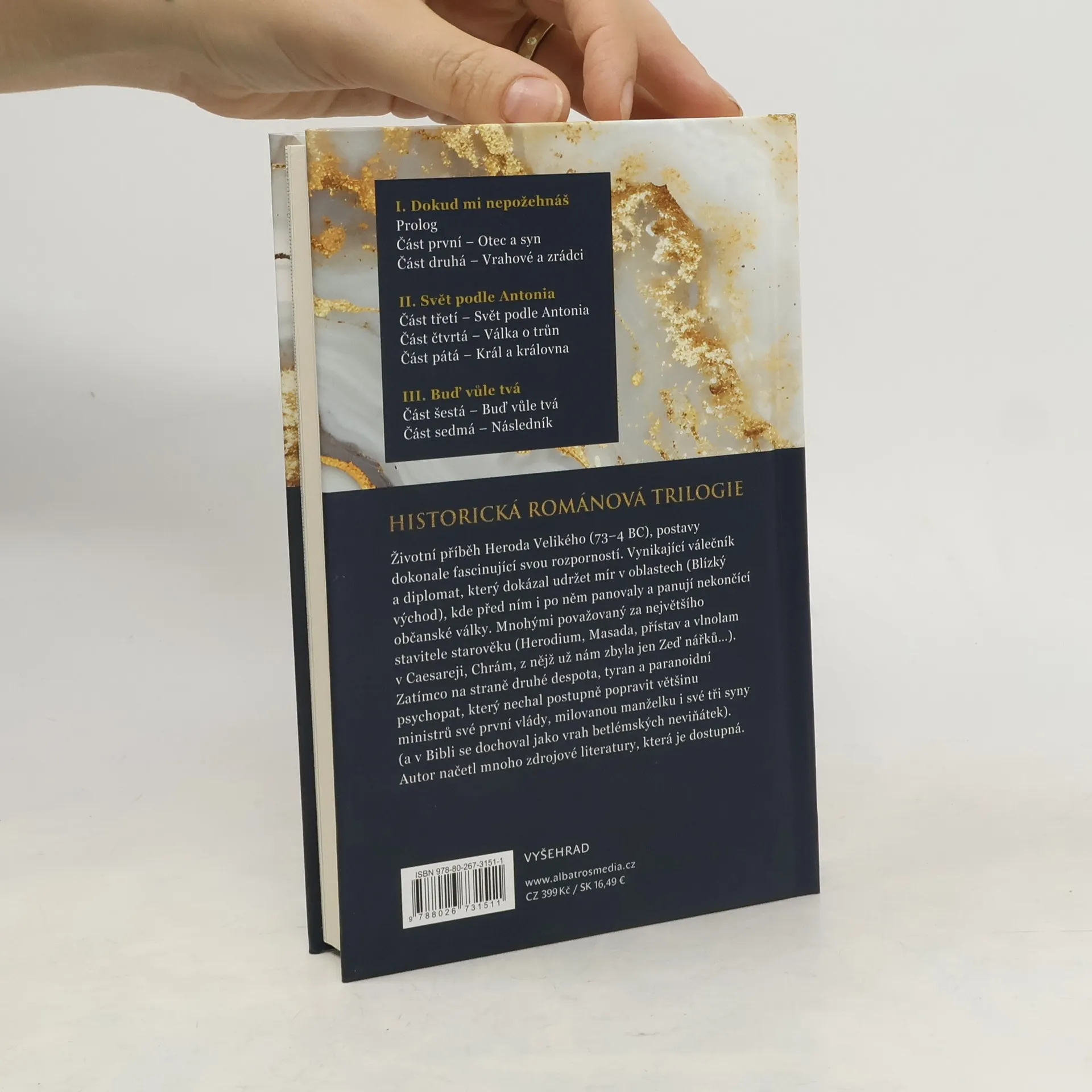 První díl románové trilogie o rozporuplném vládci a válečníkovi. Románová trilogie Jana Horníčka zachycuje životní příběh Heroda Velikého (73–4 př. Kr.), jenž byl postavou dokonale fascinující svou rozporností. Vynikající válečník a diplomat, který dokázal udržet mír v oblastech, kde před ním i po něm panovaly nekončící občanské války a na něž si činilo nároky hned několik mocností. Bývá považován za největšího stavitele starověku (Herodeion, Masada, přístav a vlnolam v Caesareji, jeruzalémský Chrám), ale též za despotu, tyrana a paranoidního psychopata, který nechal postupně popravit úředníky podílející se na vládě, milovanou manželku i své tři syny. V Bibli je Herodes zmiňován vzhledem k proroctví jako vrah dětí. Autor vychází z antických pramenů i z bohaté sekundární literatury.