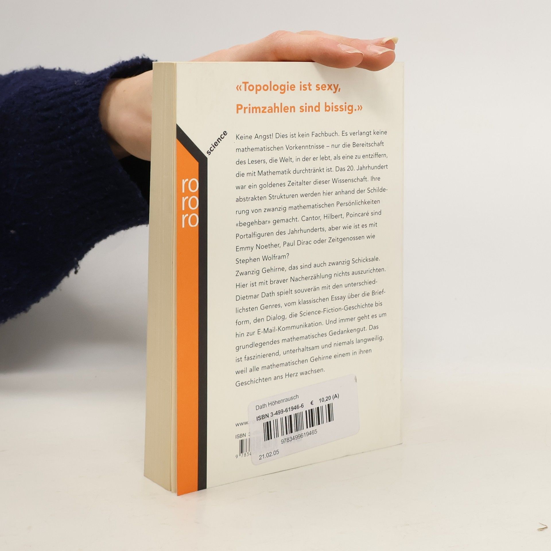 Dietmar Daths Meilensteine der Mathematik sind Gedankenexperimente. Denn bei den Porträts der 20 Forscher handelt es sich nicht um Biografien, sondern um einzelne Szenen oder Gespräche, in denen der Autor geschickt mit der Geschichte und ihren Protagonisten improvisiert und man jederzeit fürchten muss, ein X für ein U vorgemacht zu bekommen. Mit wem unterhält sich Georg Cantor über die Unendlichkeit der Zahlen und Francis Bacon, dem Verfasser von Romeo und Julia ? Wer weiß schon von der schicksalhaften Diskussion zwischen der zwölfjährigen Emmy Noether mit einem sprechenden Schmetterling über die Symmetrie von Raum und Zeit? Oder dem Interesse Stalins an den Wahrscheinlichkeitsrechungen eines Andrej Kolmogorow? Oder der in der Fantasie Daths geborenen Lena Dieringshofen, die mit ihrer Akt-Theorie den Bogen in die Zukunft der Mathematik schlägt? Um Dath zu folgen, ist also ein gehöriges Maß "präziser Fantasie" erforderlich -- zum Glück weniger der eigentlichen Mathematik, sondern der verzwickten Geschichten wegen. Es sind die ungewöhnlichen Perspektiven, aus denen die wissenschaftlichen Leistungen erzählt werden, und bei denen sich tiefe Einblicke in die teils skurrilen Persönlichkeiten offenbaren. Die Grenze zwischen Science und Fiction ist dabei nicht immer leicht zu erkennen. Aber das ist ja gerade der Reiz. --J. Schüring