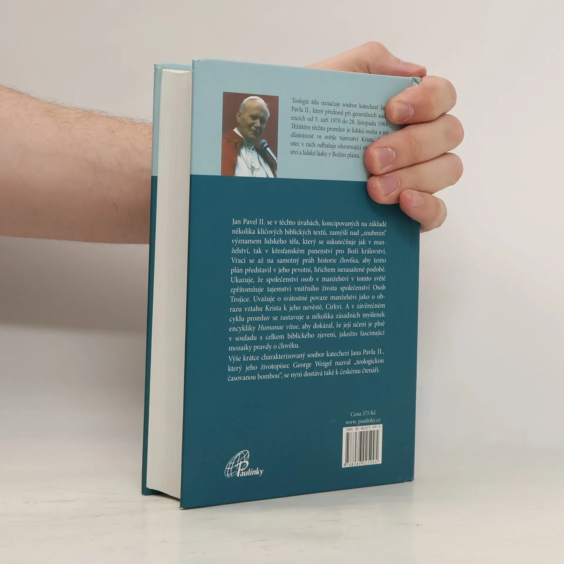 Podtitul: Katecheze Jana Pavla II o lidské lásce podle Božího plánu Teologie těla je soubor promluv Jana Pavla II. přednesených během prvních pěti let jeho pontifikátu. Svatý Otec v nich postupně odhaluje ohromující vizi manželství a lidské lásky v Božím plánu. Vrací se až na samotný práh lidské historie, aby ukázal tento plán v jeho prvotní, hříchem nezasažené podobě. Tento soubor katechezí Jana Pavla II., který jeho životopisec George Weigel nazval "teologickou časovanou bombou" se nyní dostává i k českému čtenáři.