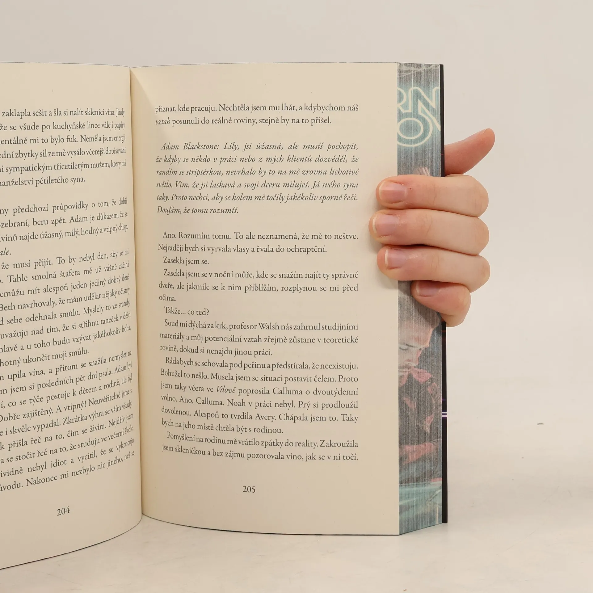 Plán na letošní rok byl jasný. Seknout s prací striptérky, respektive obsluhou nahoře bez, v pánském strip klubu Černá vdova, dodělat si diplom, najít si lepší práci a partnera, který nejenže má rád děti, ale ideálně, aby už měl nějaké vlastní. Proč muže s dětmi? Protože by tak má dcera získala sourozence.Věděla jsem, že jsem si dala velké cíle. S čím jsem ale nepočítala byly klacky pod nohama, které mě tam házel nejen sám život, ale i rodiče a v neposlední řadě Noah Crane. Manažer a zároveň vedoucí ochranky Černé vdovy. Bývalý námořní pilot… a můj budoucí problém.
