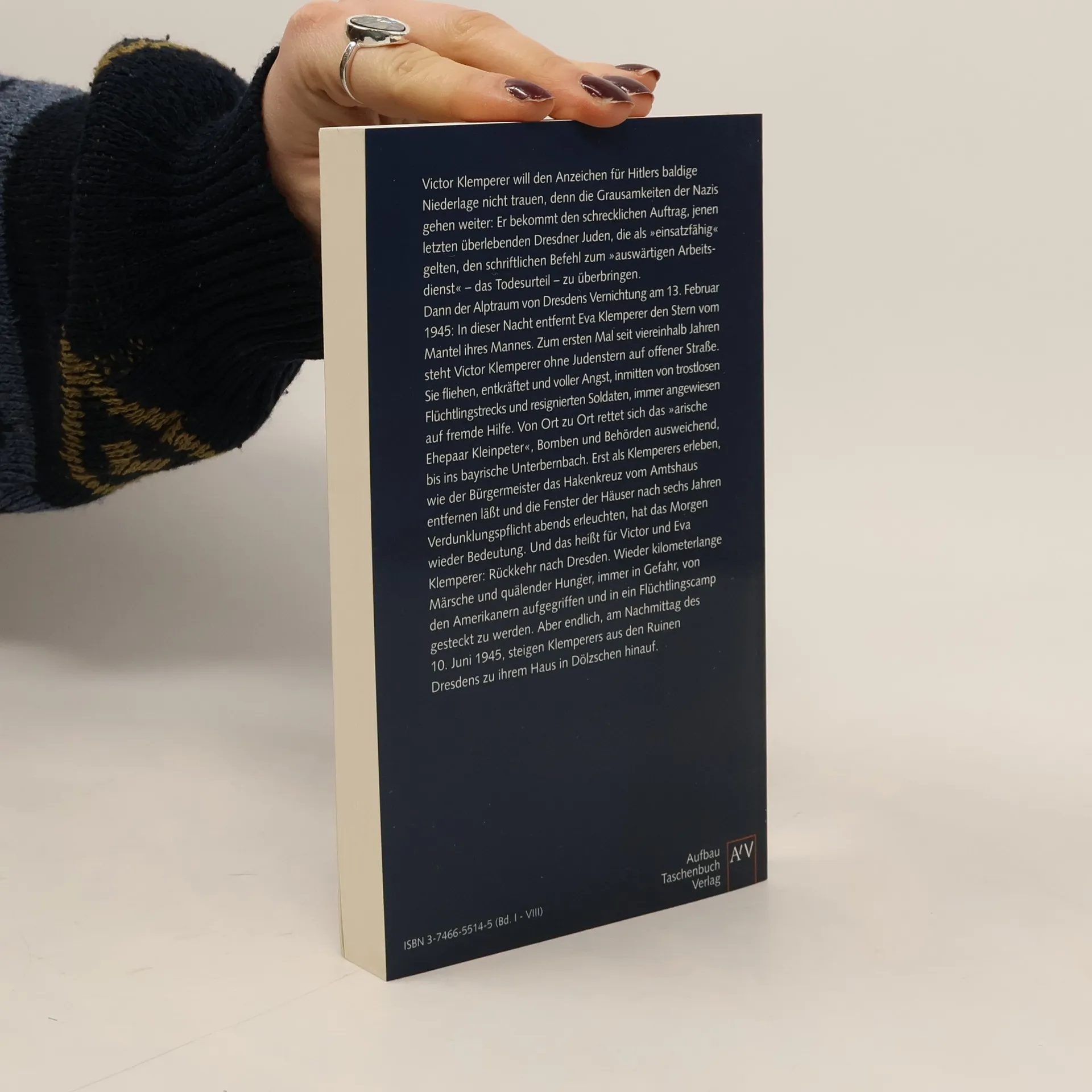 Der jüdische Romanist Victor Klemperer, Gelehrter von Weltruf, blieb, weil seine Auswanderungspläne scheiterten, in Nazi-Deutschland. Sein Überleben verdankt er der nichtjüdischen Ehefrau. "Für die Zeit danach" hielt er seinen Alltag fest, schrieb auf, was er sah und hörte: Gerüchte, Witze, Frontnachrichten. Immer erbärmlicher wurden die Bedingungen, unter denen er seiner Chronistenpflicht nachkam: Er litt an der zunehmenden Vereinsamung, an Hunger, an dem entwürdigenden Dasein im Judenhaus, aus dem ein Mitbewohner nach dem anderen verschwand