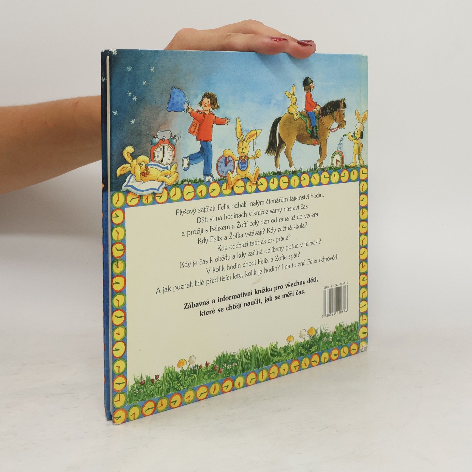 Knížka s hodinami s pohyblivými ručičkami. V druhé knížce zajíc Felix zasvětí malé čtenáře do tajemství času a hodin. Děti se dozvědí, kdo začal prvně v historii lidstva měřit čas, jak vypadaly sluneční nebo vodní hodiny a jaké hodiny používáme dnes. Prožijí s Felixem a jeho kamarádkou Žofkou celý den a zjistí, kdy chodí Žofka do školy, kdy obědvá, jak se baví odpoledne a kdy chodí s Felixem spát. V knize najdeme kromě veselých obrázků ciferník s pohyblivými ručičkami, na nichž si děti mohou nastavit čas. Tištěno na tvrdých kartonových listech s průřezem na plastický obrázek.