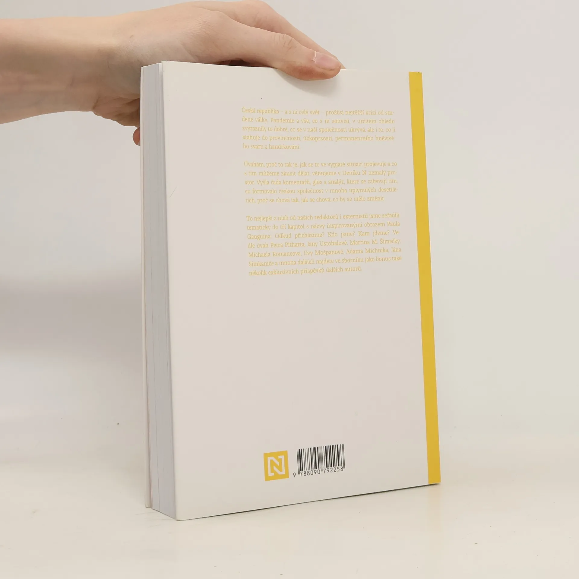 Může se naše společnost dostat z problémů, ve kterých vězí? A jak na to? Česká republika – a s ní celý svět – prožívá nejtěžší krizi od studené války. Úvahám, proč to tak je, jak se to ve vypjaté situaci projevuje a co s tím můžeme zkusit dělat, věnujeme v Deníku N nemalý prostor v řadě komentářů, glos a analýz. To nejlepší z nich od našich redaktorů i externistů jsme seřadili tematicky do tří kapitol s výmluvnými názvy: Odkud přicházíme? Kdo jsme? Kam jdeme?