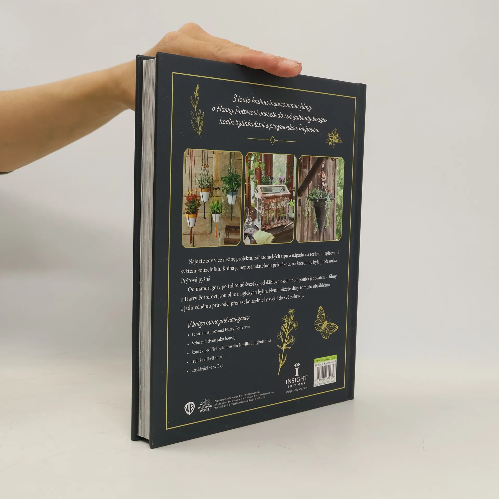 S touto knihou inspirovanou filmy o Harrym Potterovi vnesete do své zahrady kouzlo hodin bylinkářství pod vedením profesorky Prýtové. Najdete zde více než 25 projektů, zahradnických tipů a nápadů na terária inspirovaných světem kouzelníků - od mandragory po řiditelné švestky, od ďáblova osidla po úponici jedovatou. Tento obsáhlý a jedinečný průvodce vám umožní přenést kouzelnický svět do vašich domovů. Kniha je nepostradatelnou příručkou pro všechny milovníky Harryho Pottera a magických bylin.