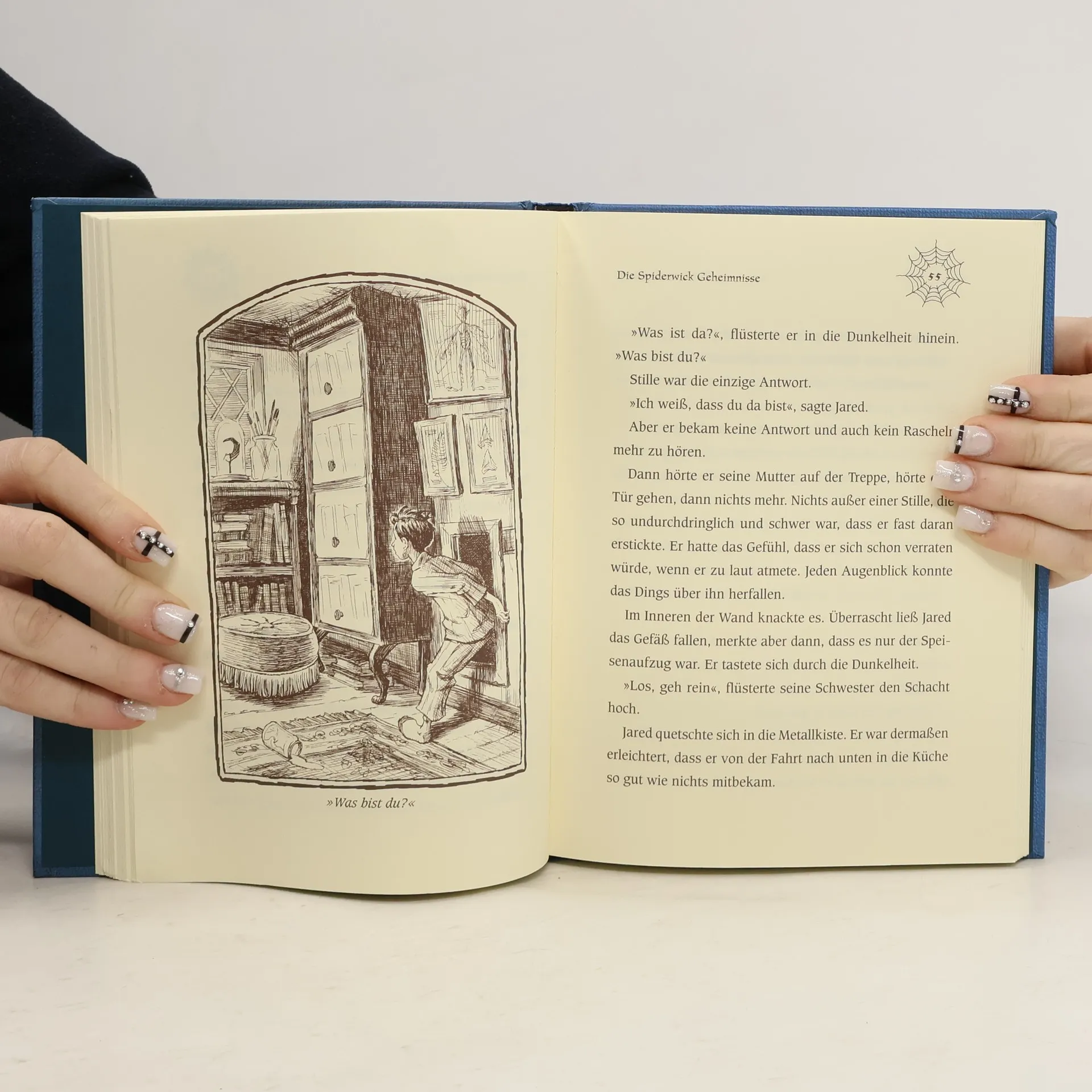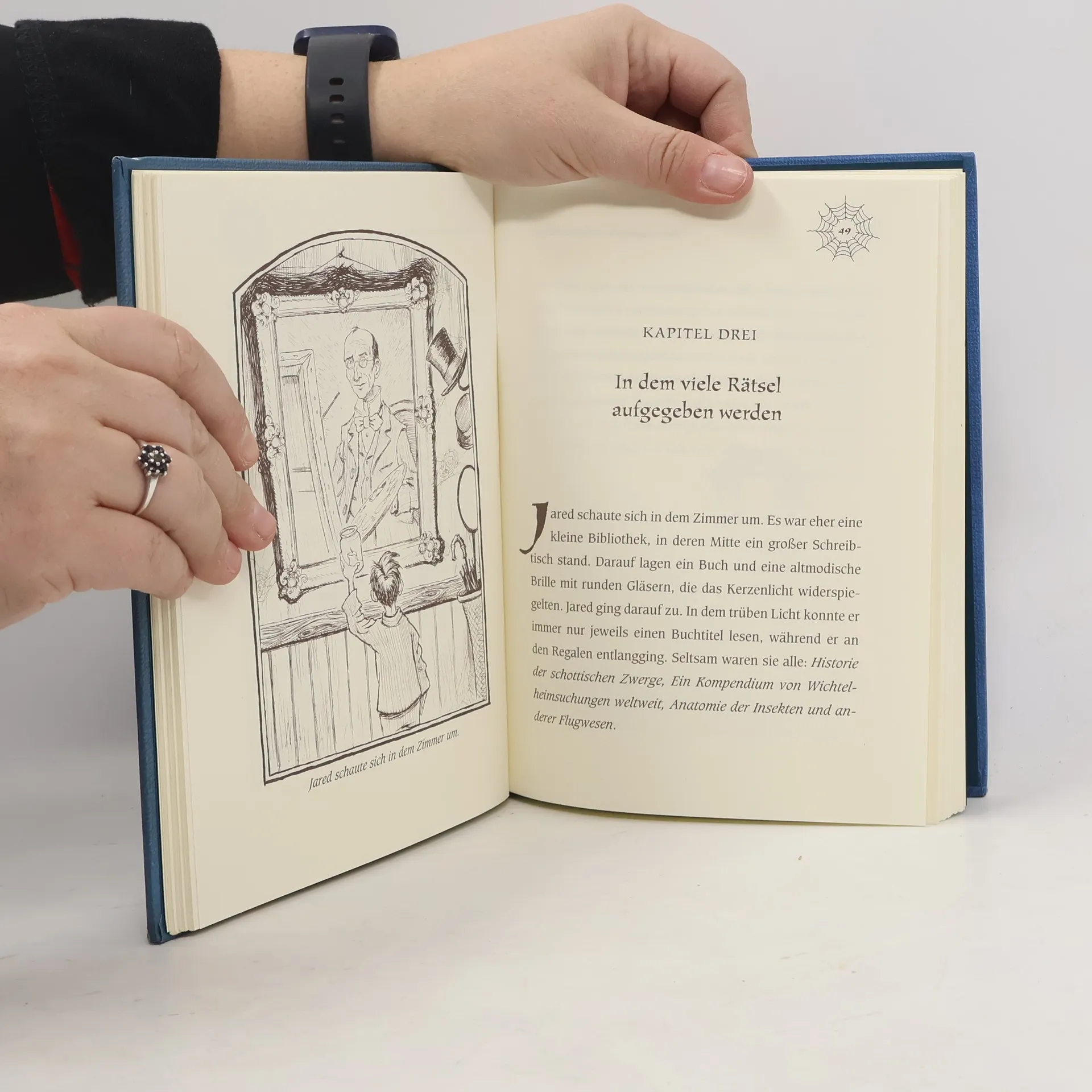 Ein altes, verfallenes Haus einer ungeliebten Tante –- das ist das neue Zuhause der Zwillinge Jared und Simon, ihrer Schwester Mallory und ihrer Mutter. Jared ist überhaupt nicht scharf darauf, dort zu wohnen. Aber Jareds Eltern sind geschieden, und sie können nirgendwo anders unterkommen. Doch das Haus von Tante Lucinda birgt viele Geheimnisse, wie die Kinder schnell feststellen: Da gibt es merkwürdige Geräusche in den Wänden, ein Nest mit einer Kakerlaken-Girlande –- und einen Aufzug, der in ein verborgenes Zimmer führt. In diesem Zimmer findet Jared Hinweise auf eine andere Welt, in der sich Elfen, Kobolde und Gnome tummeln. Und bald schon bekommen die Kinder die Anwesenheit dieser Wesen hautnah zu spüren: Mallorys Haare werden an ihr Bett geknotet, und Jared trifft einen leibhaftigen Irrwicht. Außerdem findet er “Arthur Spiderwicks Handbuch für die fantastische Welt um dich herum”, und damit geht das Abenteuer erst so richtig los. In diesem ersten Teil der Geschichte um Jared, seine Geschwister und die fantastische Welt der Elfen und Kobolde werden die Grundlagen gelegt für die Abenteuer, die die drei Kinder in den Folgebänden erleben werden. In vielerlei Hinsicht wird hier eine klassische Fantasygeschichte erzählt, doch manches daran ist ungewöhnlich: Die Kinder leben keineswegs in einer heilen Märchenwelt, sondern leiden unter der Scheidung ihrer Eltern und haben ihre Fehler und Macken.