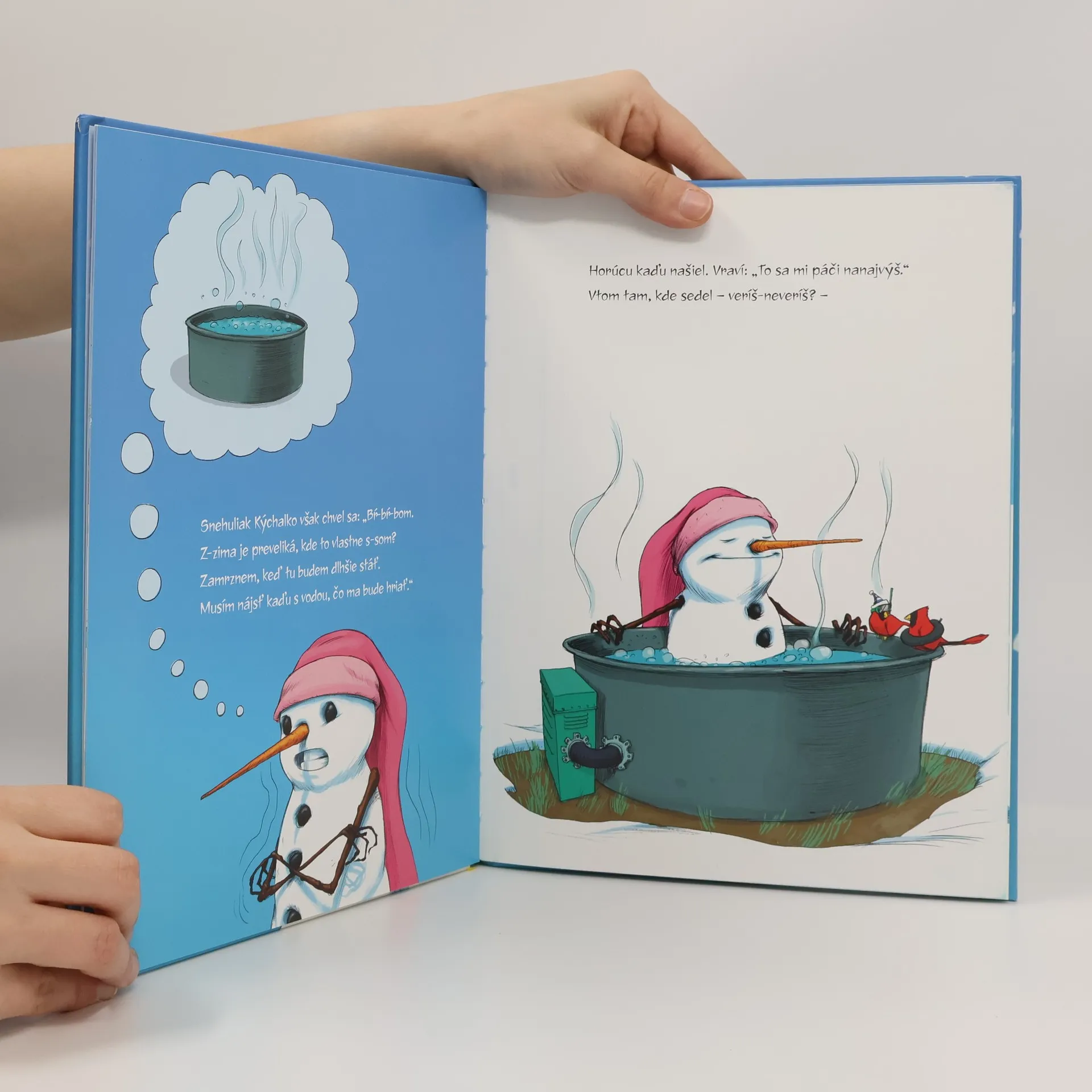 Zábavný a poučný príbeh o prechladnutom snehuliakovi. Snehuliakovi je hrozná zima, prechladol a stále kýcha. Chŕ-chŕ-chŕ, hap-čí! Preto mu deti dali meno "Kýchalko". Aby sa zahrial, pije horúce kakao, sadne si do vírivky alebo stojí pri ohníku - a začne sa topiť. Deti však dobre vedia, ako ho postaviť na nohy, a postarajú sa, aby vyzdravel. Veselosť stránok dotvárajú hravé ilustrácie. Zábavné príhody učia deti vcítiť sa do problémov iných ľudí a pomôcť im ich vyriešiť. Nad knihou sa môžeme zabaviť aj tak, že spočítame predmety na stránke alebo sa pozhovárame s deťmi o obrázkoch a výrazných emóciách, ktoré z nich možno vyčítať. Nádherná zimná kniha Snehuliak Kýchalko rozpráva najmä o láske, láskavosti a duchu zimy.