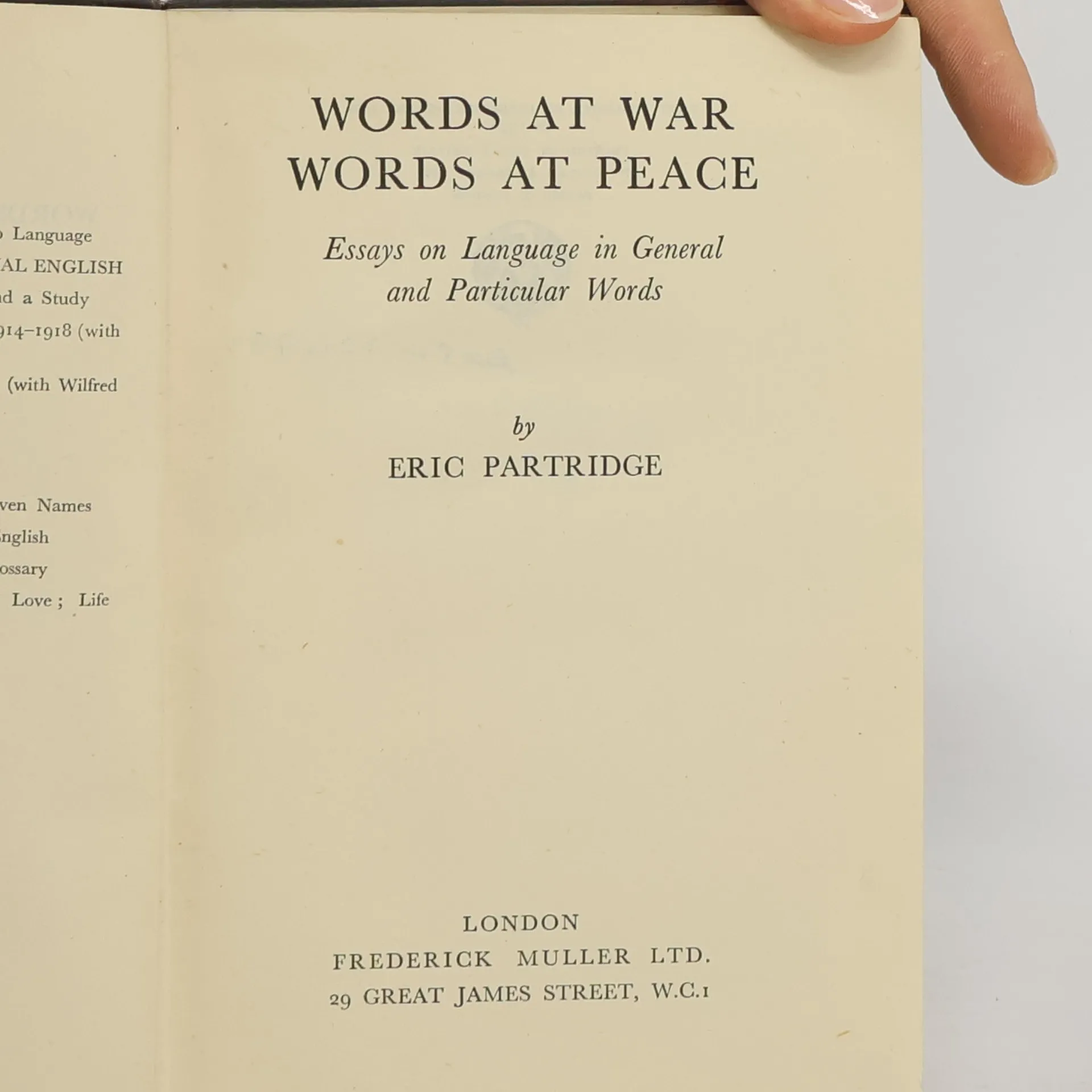 Words at War: Words at Peace, Erich Partridge