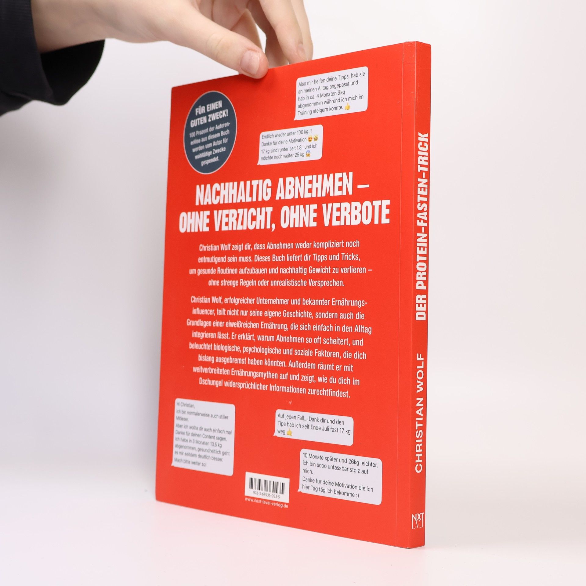 Nachhaltig abnehmen & Bauchfett verbrennen – ohne Verzicht und ohne Verbote! Du willst Bauchfett schnell loswerden, dein Gewicht endlich unter Kontrolle bringen und dabei nicht auf Genuss verzichten? Dann ist Der Protein-Fasten-Trick genau das Richtige für dich! Mit einer Kombination aus eiweißreicher Ernährung und cleveren Fastenstrategien zeigt dieses Abnehmen-Buch, wie du nachhaltig Fett verbrennst, deinen Stoffwechsel optimierst und gesünder lebst – ohne Hungern und ohne strenge Verbote. Das erwartet dich: Leicht umsetzbare Challenges, die dir den Einstieg erleichtern und erste Erfolge bringen Praktische Tools wie eine Challenge-Checkliste und einfache Rezepte für den Alltag Die Wahrheit über Ernährungsmythen – endlich Klarheit statt Verwirrung Alltagstaugliche Routinen, die dauerhaft wirken Warum dieses Buch? Christian Wolf – erfolgreicher Unternehmer und Ernährungsexperte – hat bereits über 500.000 Menschen geholfen, ihr Gewicht zu reduzieren und ihre Gesundheit nachhaltig zu verbessern. Mit Der Protein-Fasten-Trick bekommst du sein Wissen in einer einfachen, effektiven Methode, die sich perfekt in deinen Alltag integrieren lässt. Starte noch heute und werde die beste Version von dir – mit WPF – Der Protein-Fasten-Trick!