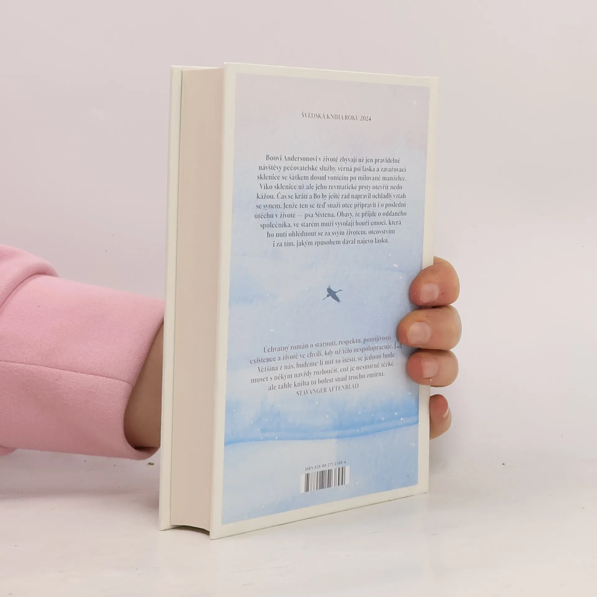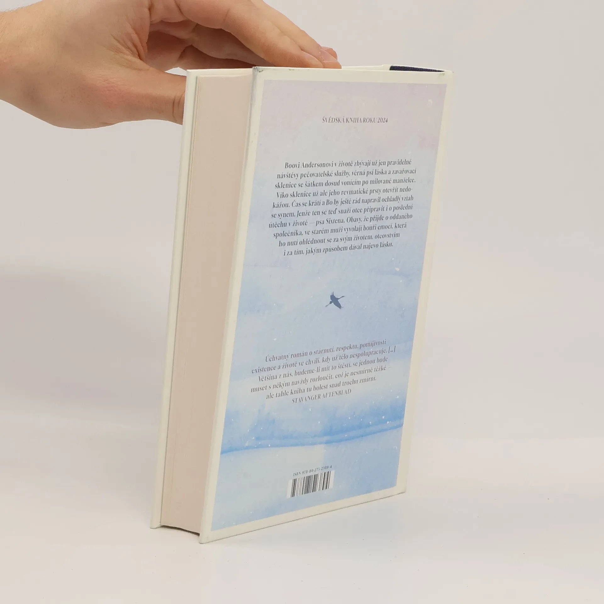 Boovi toho v životě nezbývá o moc víc než pravidelné návštěvy pečovatelské služby, věrná psí láska a zavařovací sklenice se šálou dosud vonící po milované manželce. Víko sklenice už ale Boovy revmatické prsty otevřít nedokážou. Bo nemá příliš času dát věci do pořádku a stihnout to, co se zdá čím dál nemožnější — napravit ochladlý vztah se synem. Ten se teď totiž Boa ještě ke všemu snaží připravit i o poslední útěchu v jeho životě — psa Sixtena. Obavy, že přijde i o svého oddaného společníka, ve starém muži vyvolají bouři emocí, která ho nutí ohlédnout se za svým životem, otcovstvím i za tím, jakým způsobem dával najevo lásku. Jeřábi táhnou na jih je hluboce dojemný debut o muži na sklonku života, o stárnutí, synech a psech. Švédská kniha roku 2024